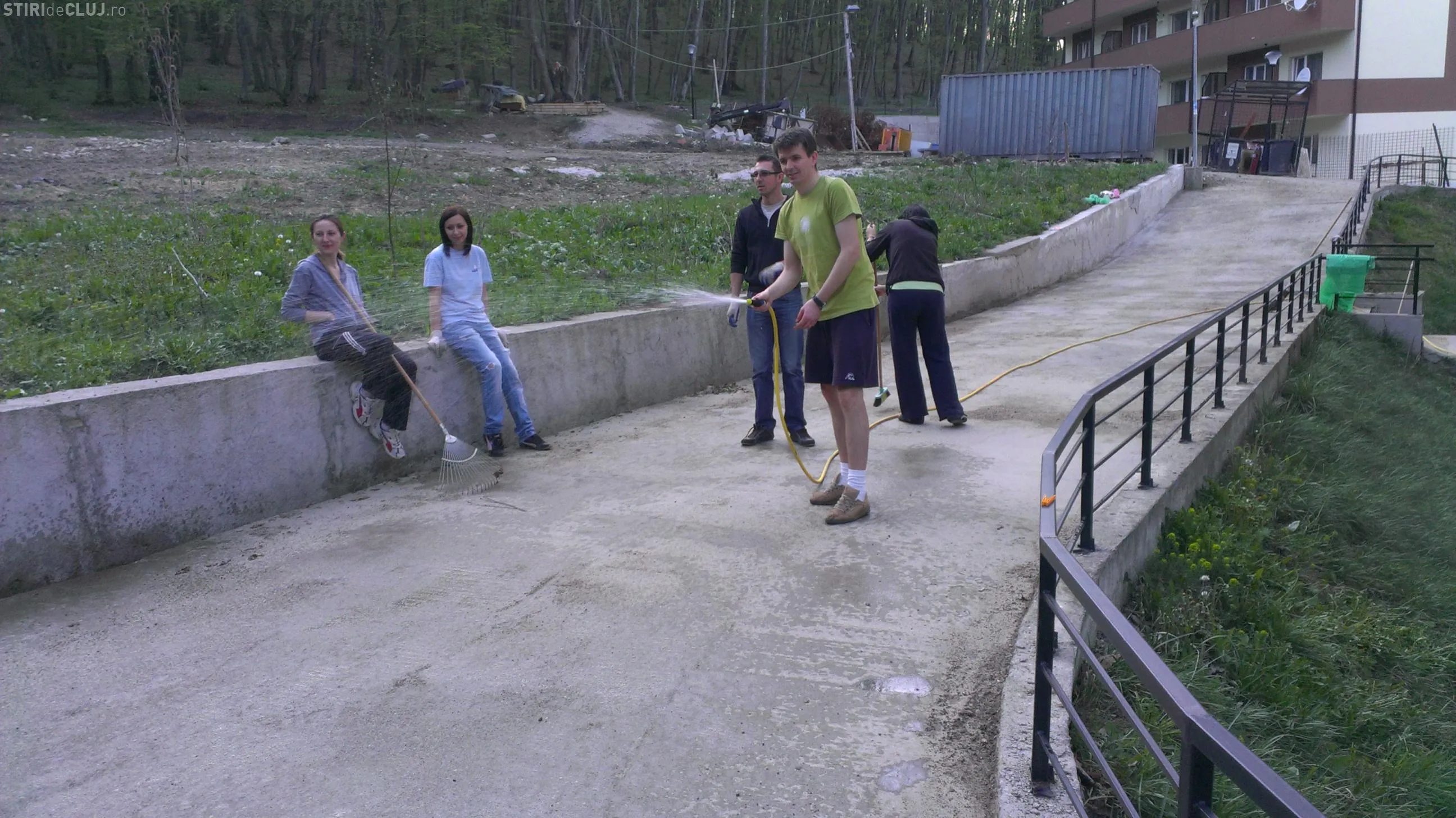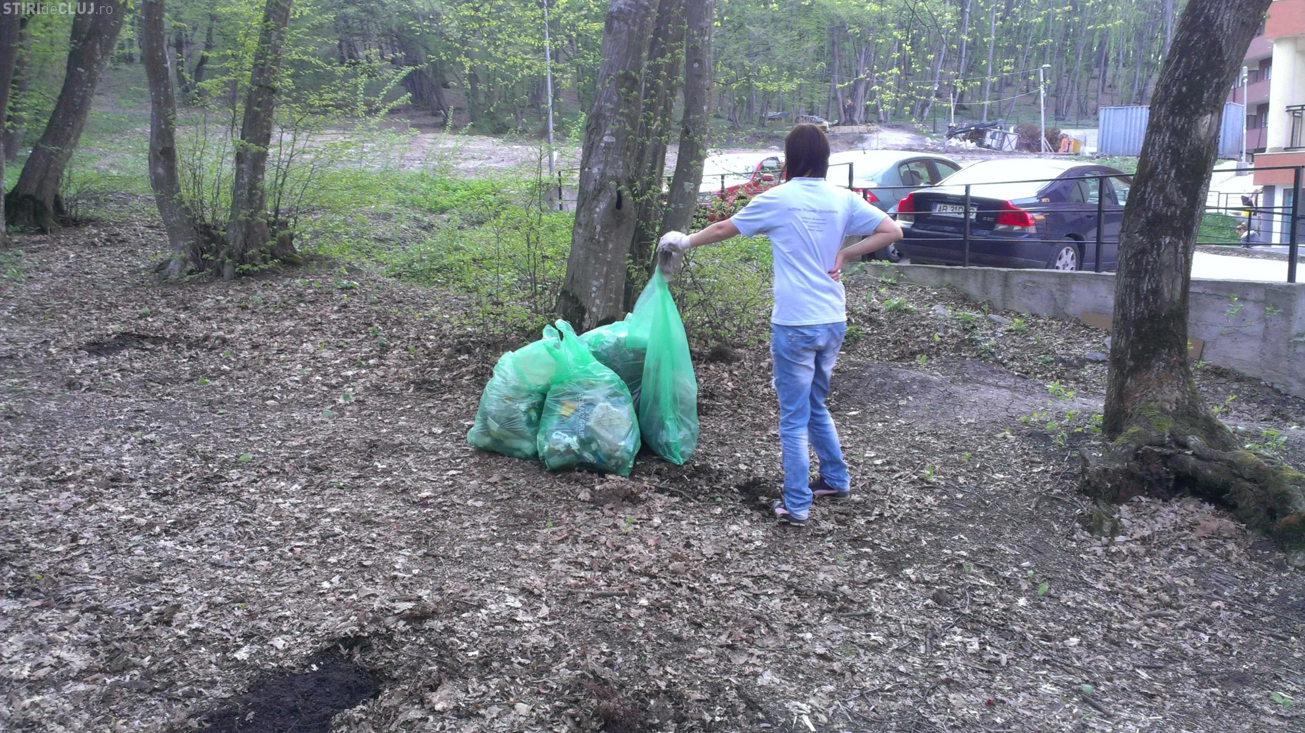 După curăţenia generală din perimetrul blocului, grupul de ”ecologişti” creat ad-hoc şi-a îndreptat atenţia asupra spaţiilor verzi invadate de gunoaiele lăsate în urmă toamna trecută de unii clujeni ”civilizaţi”.