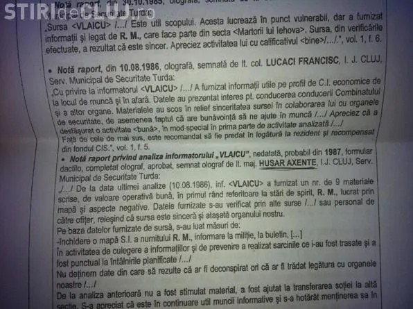 Pe această notă informativă, ofiţerul Husar i-a trasat informatorului Vlaicu de ce anume trebuie se ocupe în continuare. ”Am instruit sursa să ne informeze în continuare cu orice aspecte legate de acest caz şi alte comentarii, stări de spirit”.