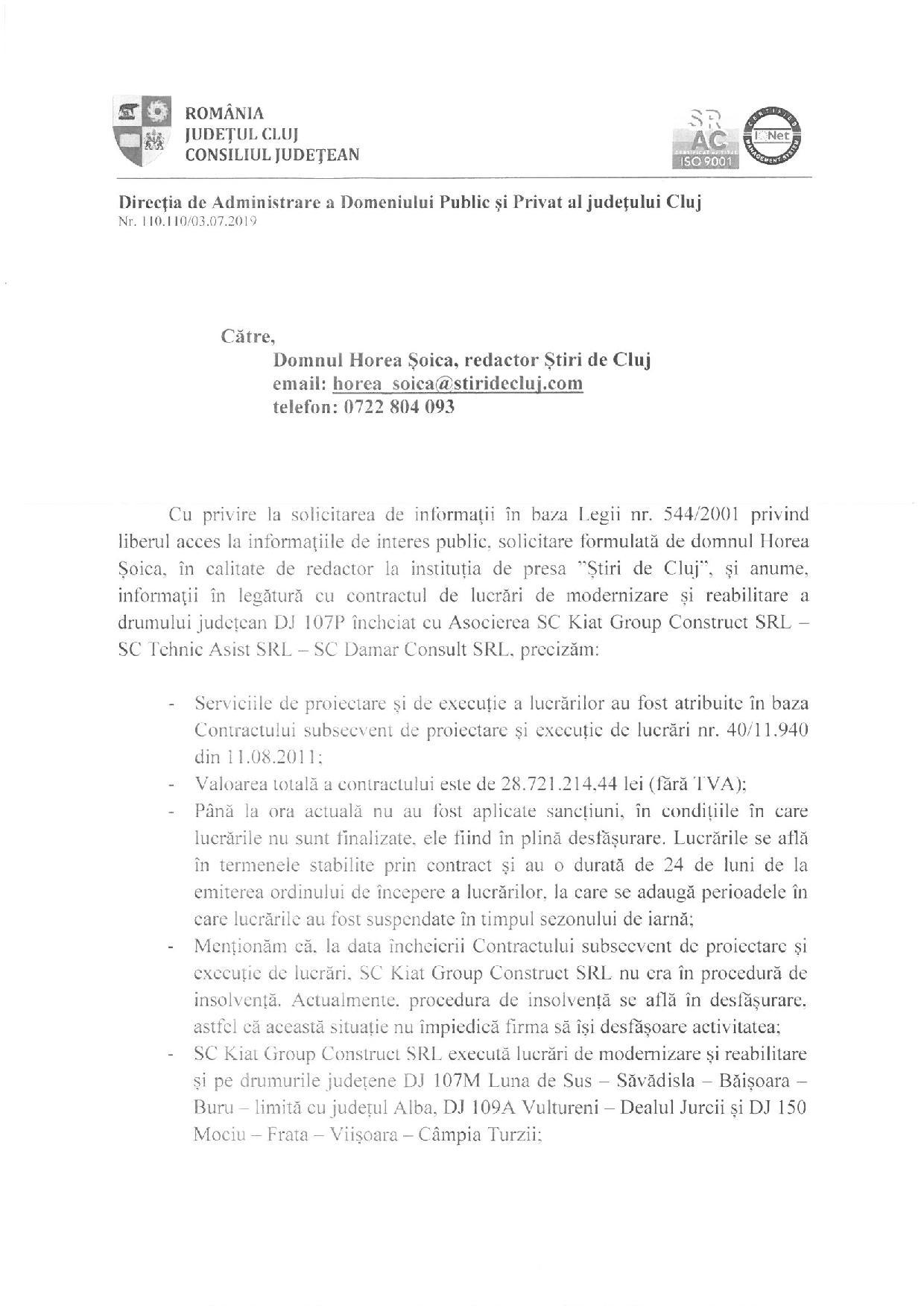 Președintele Consiliului Județean Cluj susținea în luna iulie 2019 că nu sunt motive de îngrijorare în privința lucrărilor de pe DJ 107P, spre Mărișel, cu toate că primarul de acolo a dezvăluit probleme foarte mari. Curios că acum a anunțat că a trimis notificare de reziliere a contractului pentru acest drum, tocmai din cauza problemelor foarte mari.