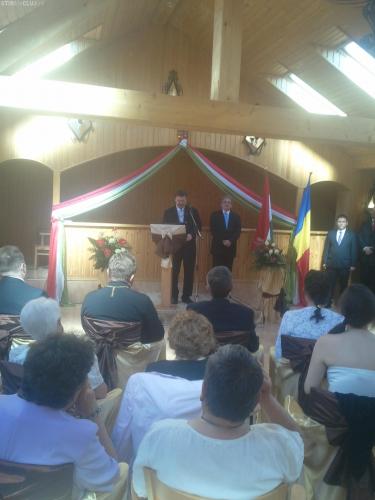 La ceremonia de incheiere a mandatului sau de patru ani in functia de consul general al Ungariei au fost intonate imnurile Ungariei si Romaniei si au participat si ambasadorul Ungariei in Romania, Fuzes Oskar, episcopii bisericilor traditionale maghiare din Ardeal – reformata, romano-catolica, unitariana si evanghelica, presedintele UDMR Cluj, Mate Andras, presedintele PCM Cluj, Csep Sandor, presedintele PPMT, Toro Tibor, dar si oameni de cultura maghiari din oras.