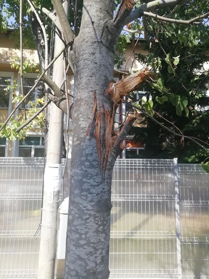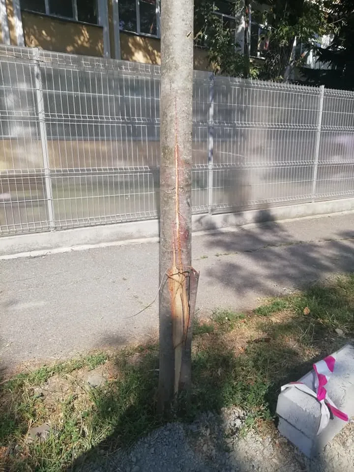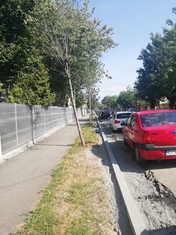 ”Domnule primar Emil Boc, ia uitați-va cum lucrează minunații muncitori în Cluj! Schimbă țevi, sparg drumuri, pun borduri și ii doare în cot de ce e în jurul lor. Abia au fost plantați acești arbori, abia apucaseră sa se prindă, ia uitați-va cum i-au lovit, ăștia vor muri în câteva luni, uitați-vă cât de strâmbi i-au așezat la loc”, a relatat o clujeancă.