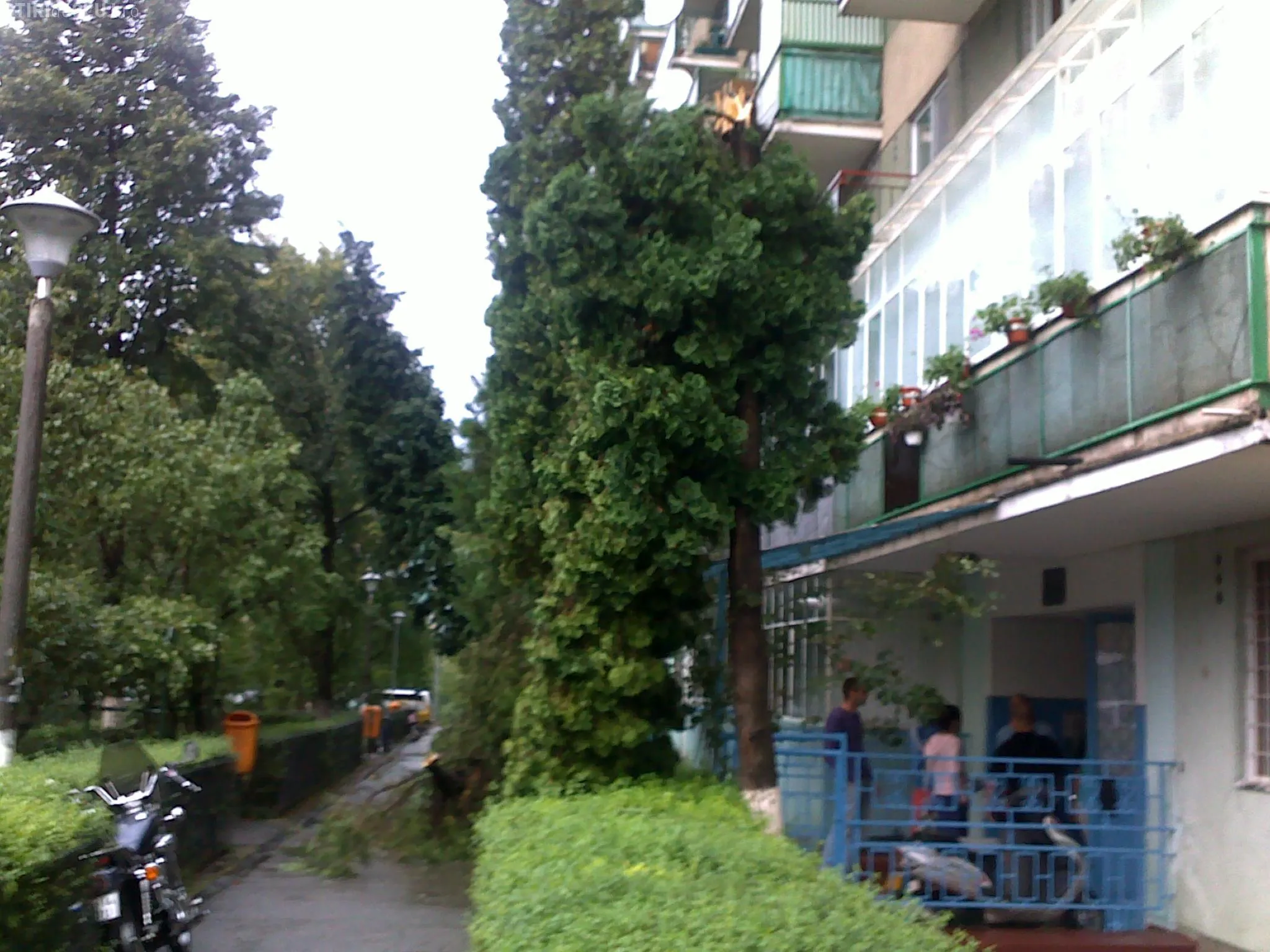 O doamna de la etajul intai ne povesteste ca atunci cand e vijelie arborele din fata balconului se unduieste amenintator . "De fiecare data cand e furtuna iau copilul din camera lui sa doarma in sufragerie pentru ca mi-e teama ca s-ar putea sa-i cada acest copac in camera"