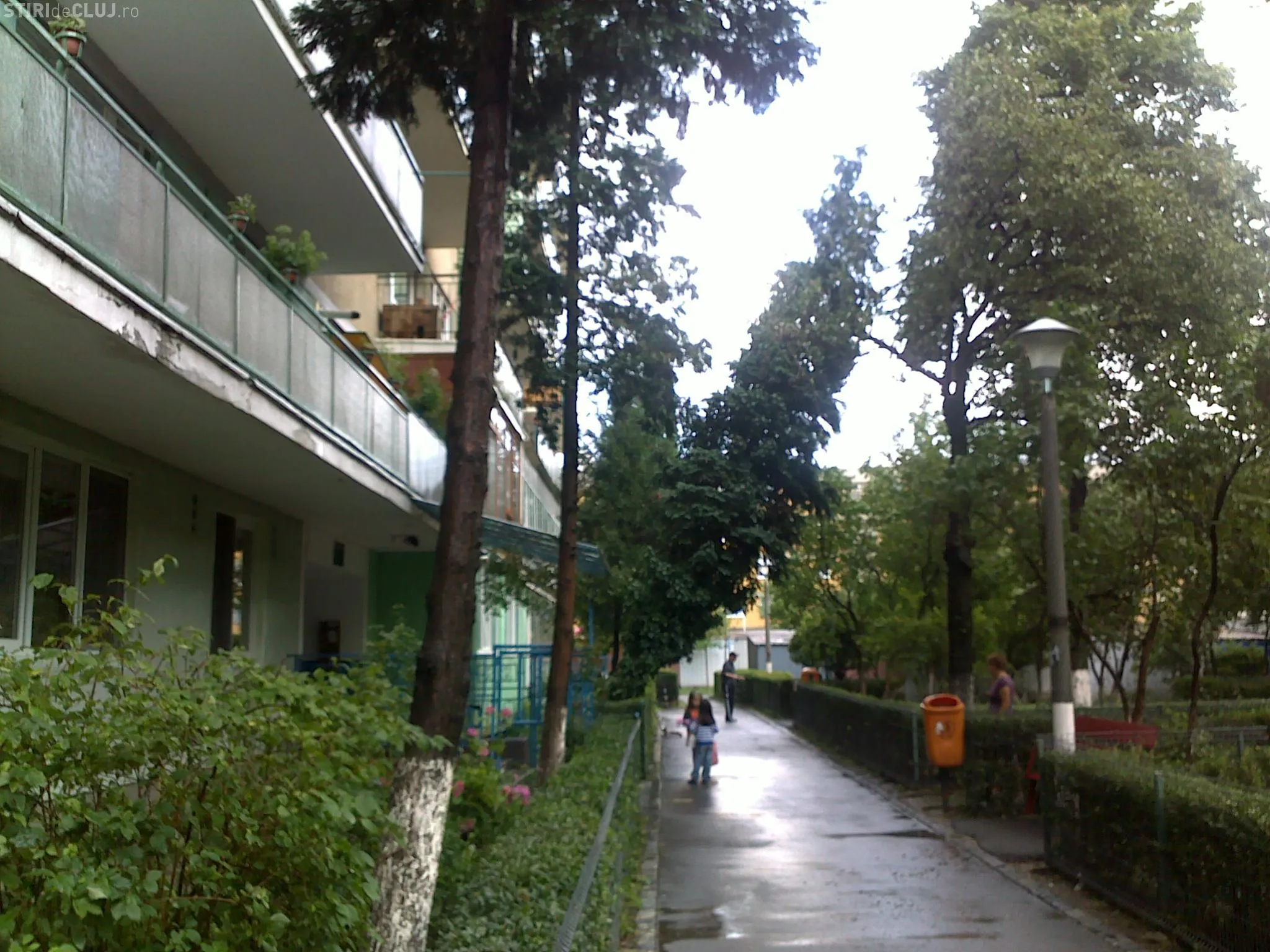 Copiii de pe o strada din Cluj se joaca sub amenintarea unui copac care sta sa cada. RADP a refuzat sa-l taie pe motiv ca "il tine iedera"