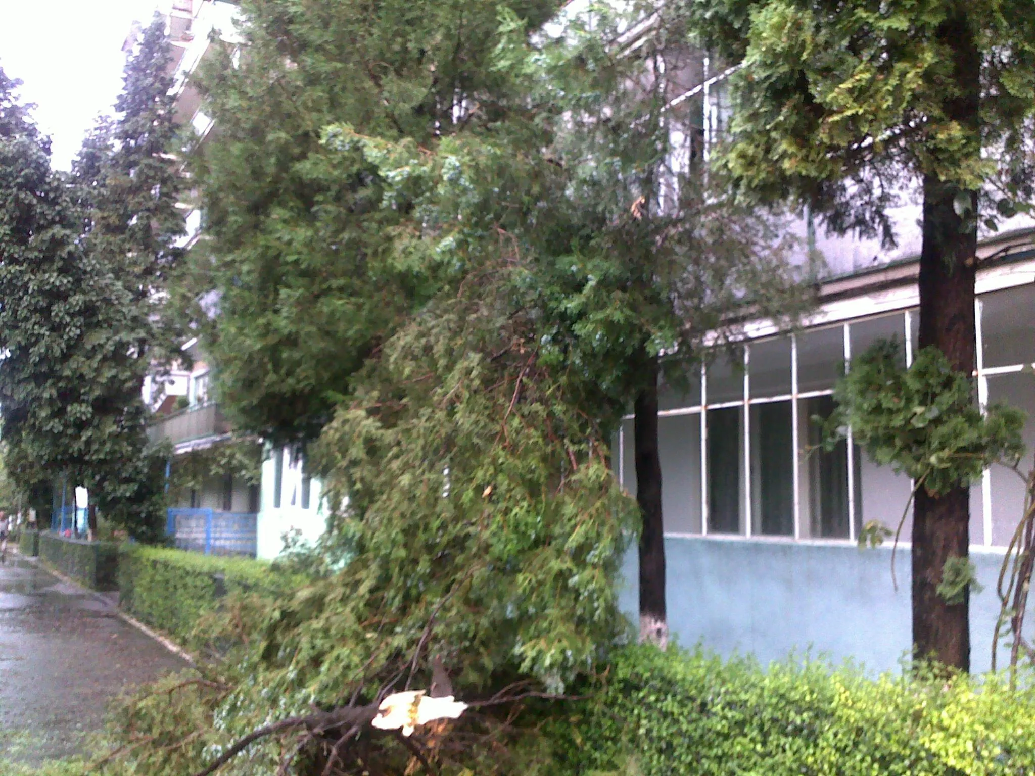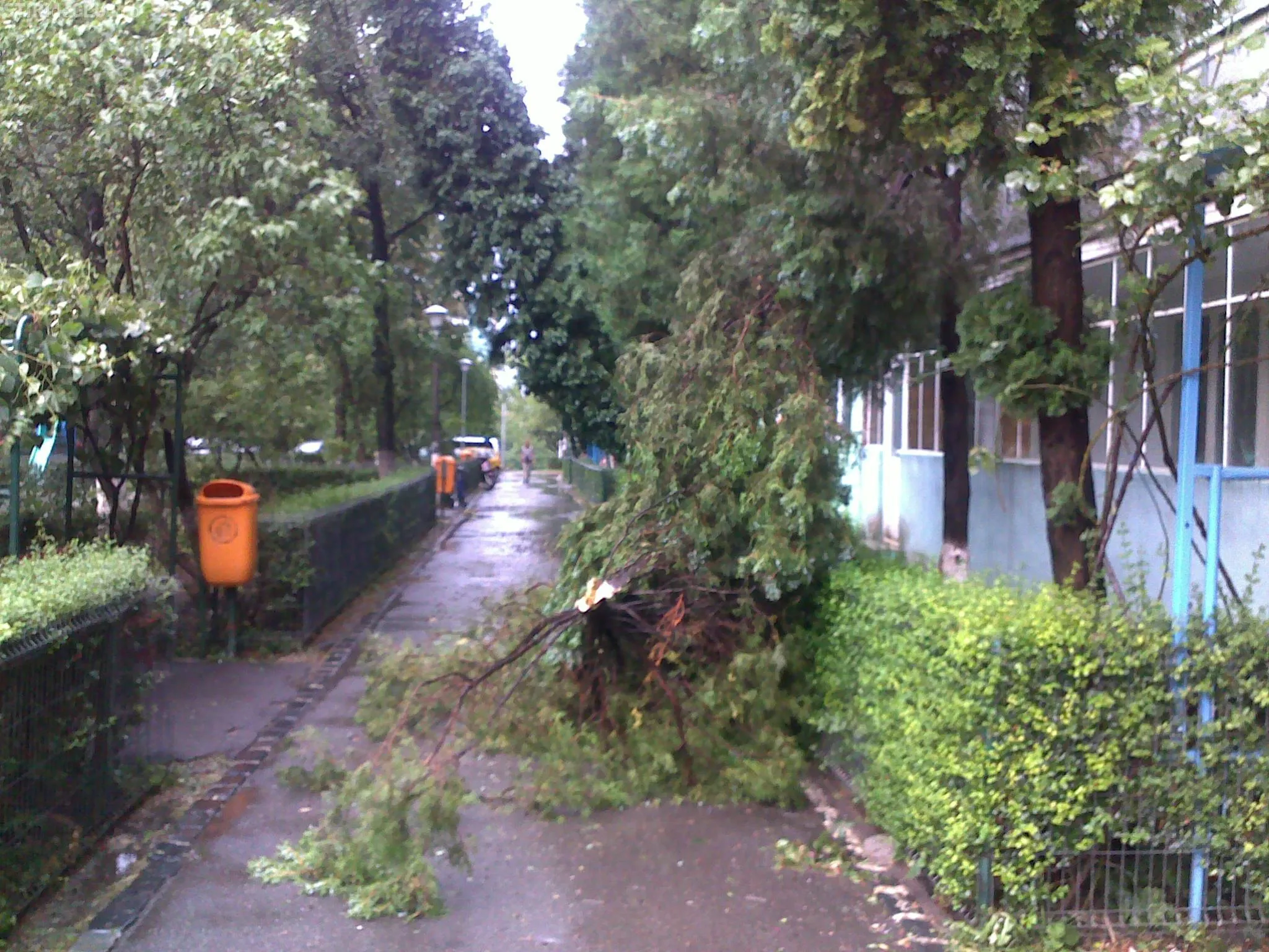"La furtuna de acum doua saptamani au fost rupti ambii copaci de la scara mea. S-au rupt in doua si au cazut pe aleea de la intrarea in bloc. Si erau drepti nu erau inclinati ca asta" spune Marius S.