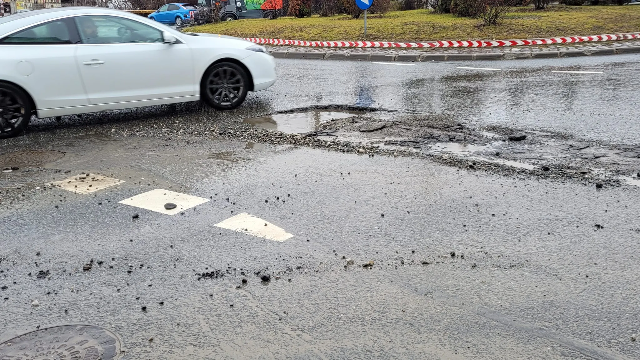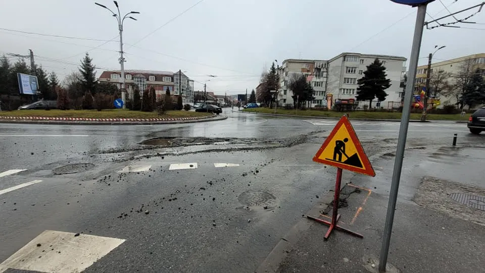 Crater raportat de șoferi la intersecția Câmpului și Fruzișului! Lucrarea a fost abandonată de sărbători - FOTO