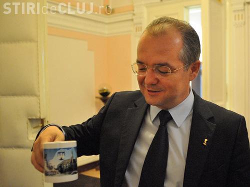 Noul primar și-a adus cu el două căni pe care scrie "Cluj-Napoca", din care să bea ceai.