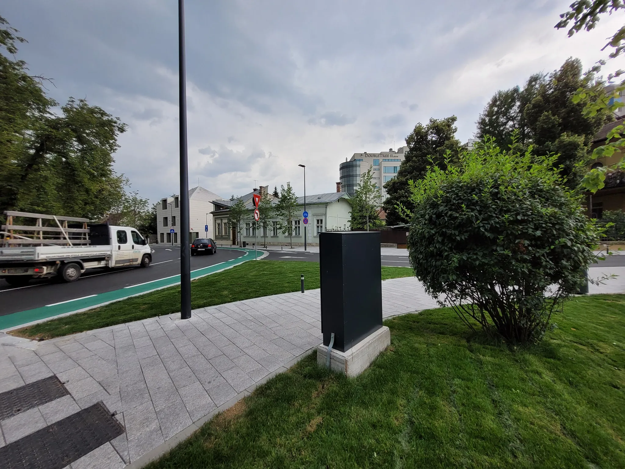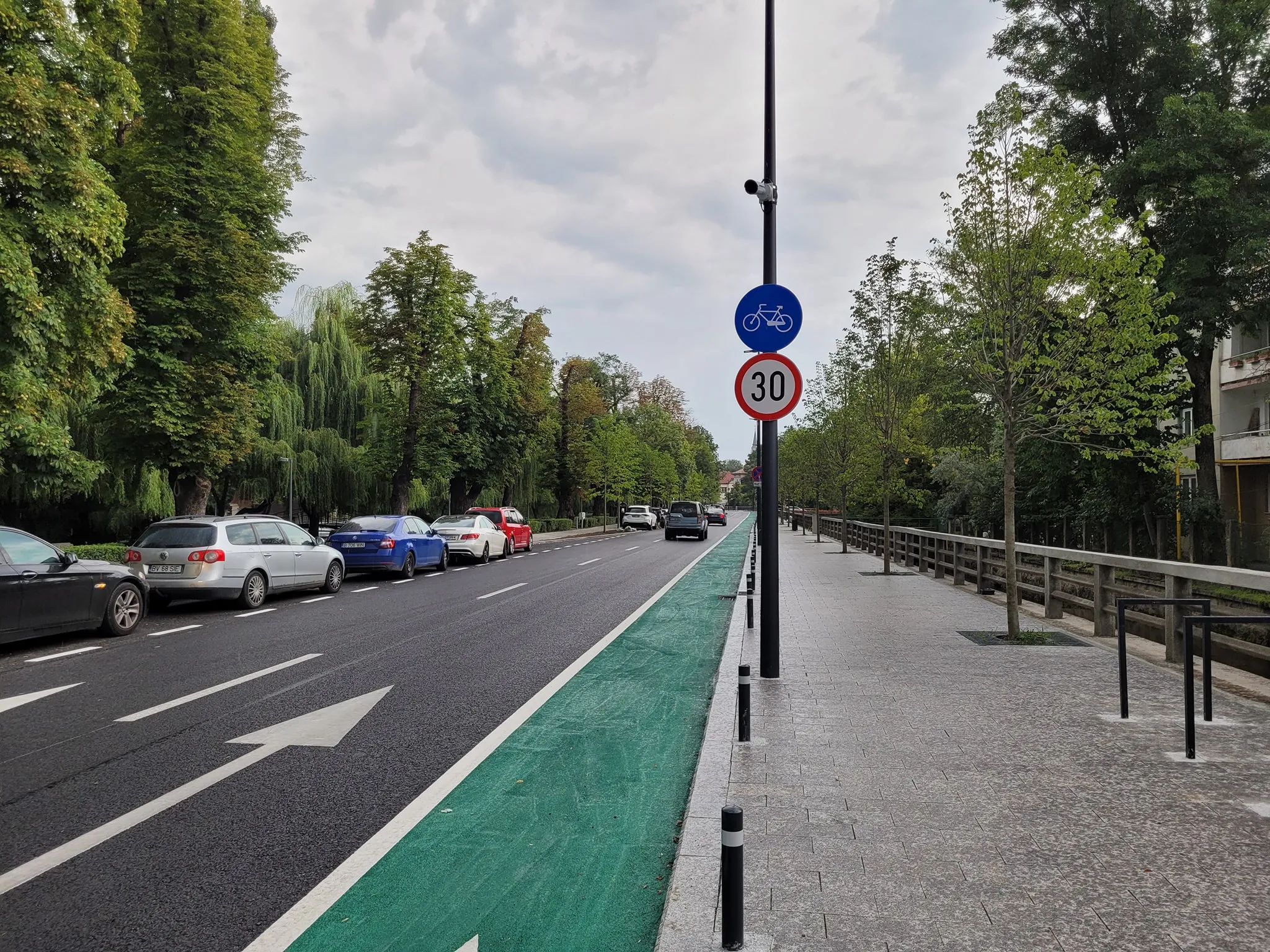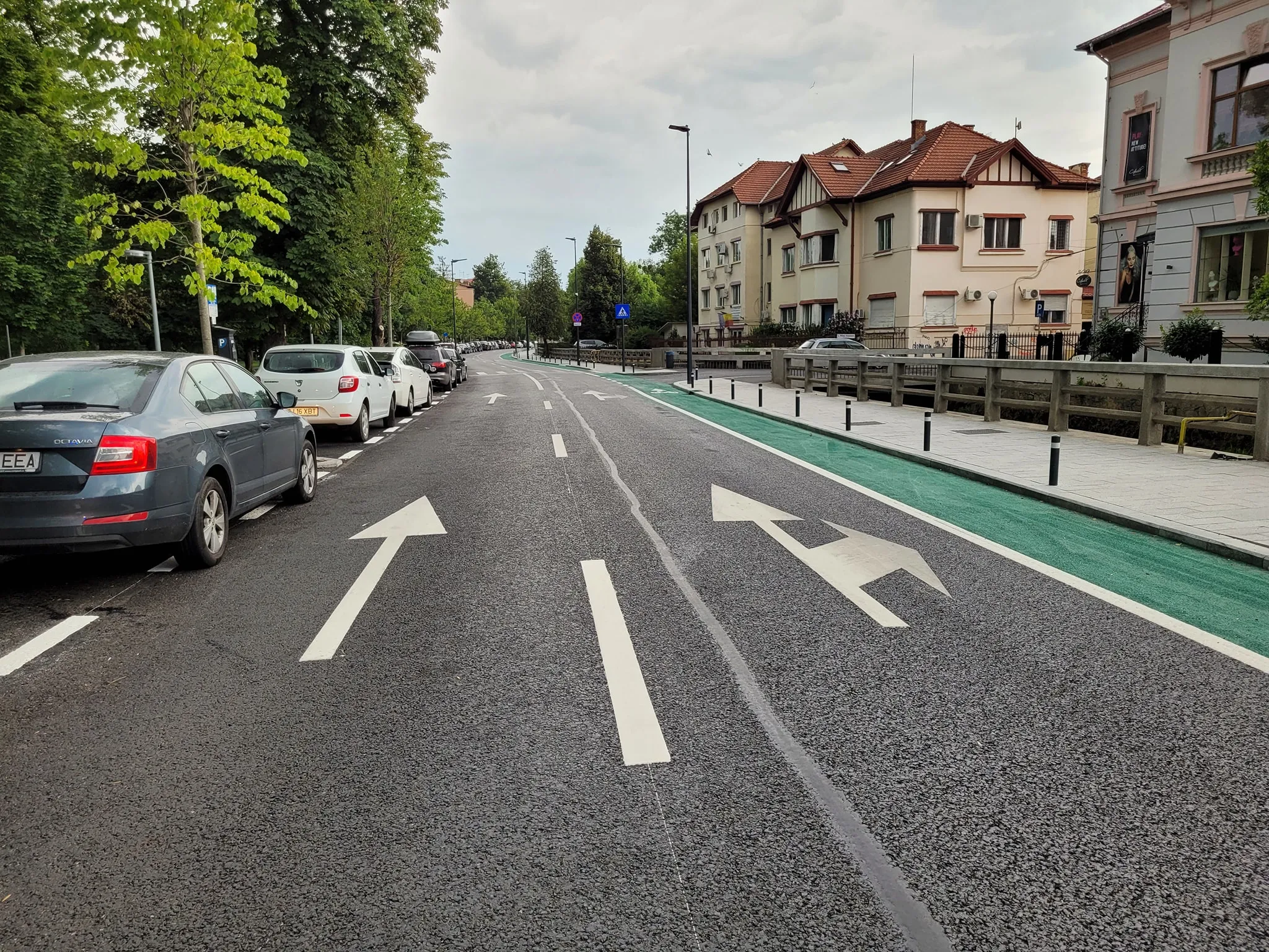 Astfel, pe Cardinal Iuliu Hossu sunt două benzi de circulație, cu locuri de parcare pe partea cu lacul, iar pe partea cu canalul morii este o bandă de biciclete.