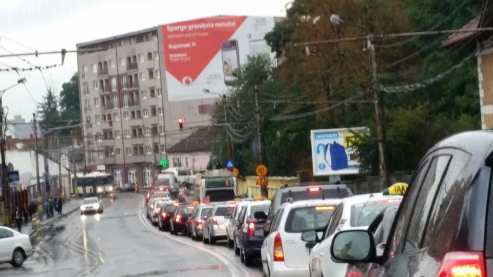 Traficul este îngreunat de numărul mare de autoturisme care intră în Cluj-Napoca.