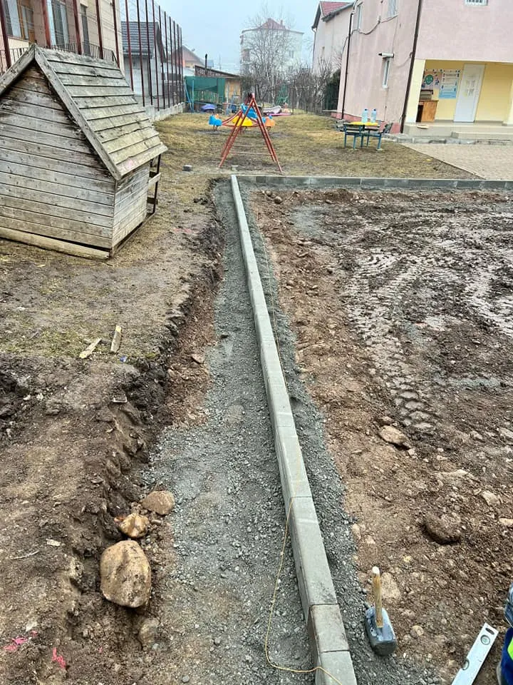 Curtea grădiniței din Florești, de pe strada Horea, este reabilitată, urmând ca cei mici să montate și echipamente de joacă.