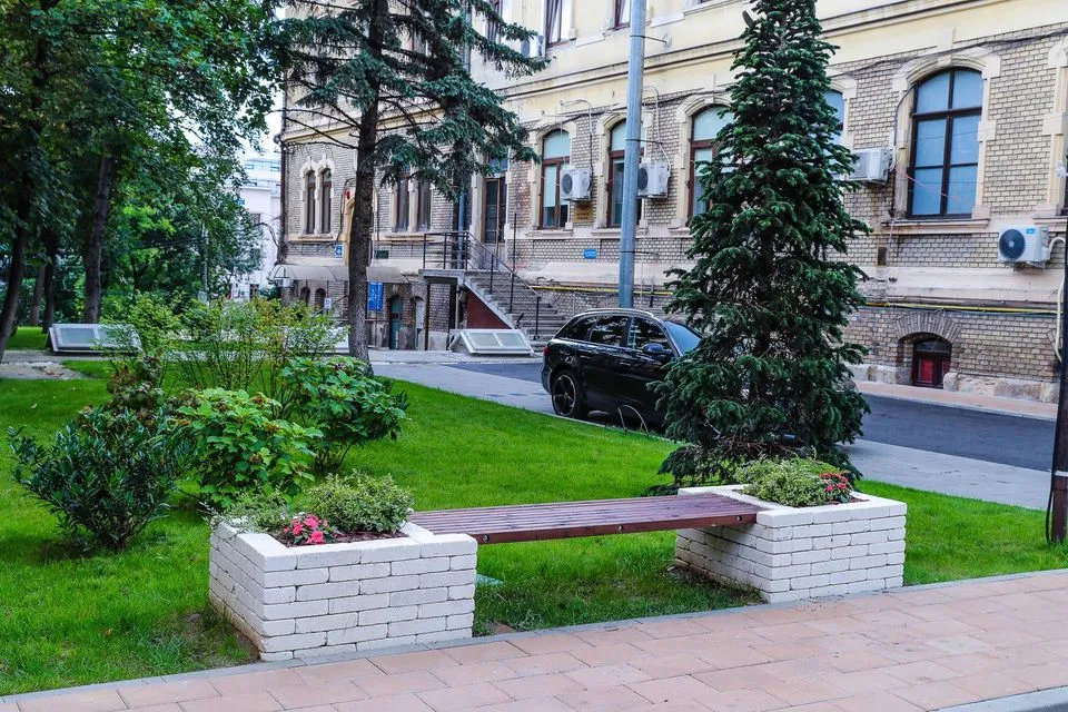 Au fost refăcute grădinile interioare, prin amenajarea spațiilor verzi, au fost trasate și asfaltate aleile, au fost montate bănci, suporți pentru biciclete, stații de încărcare pentru mașini electrice. De asemenea, sistemul de iluminat a fost schimbat și au fost amenajate 276 locuri de parcare.