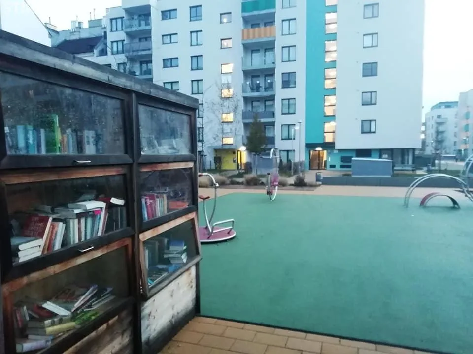 Foto: Parcul de la bloc are o bibliotecă în care sunt cărți și reviste