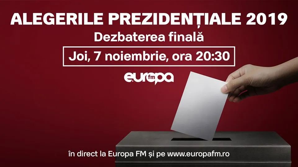 Candidații la alegerile prezidențiale vor participa la o dezbatere organizată de Europa FM, joi, 7 noiembrie, de la ora 20.30.