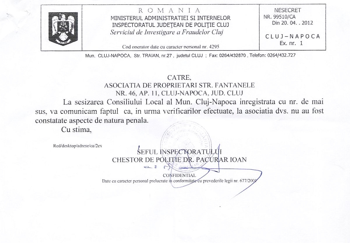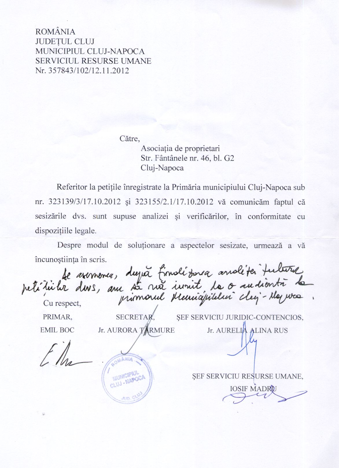 La multiplele şi foarte punctualele sesizări, după luni bune, primarul Emil Boc, a răspuns în cele din urmă insistenţei domnului Boca (vezi doc).