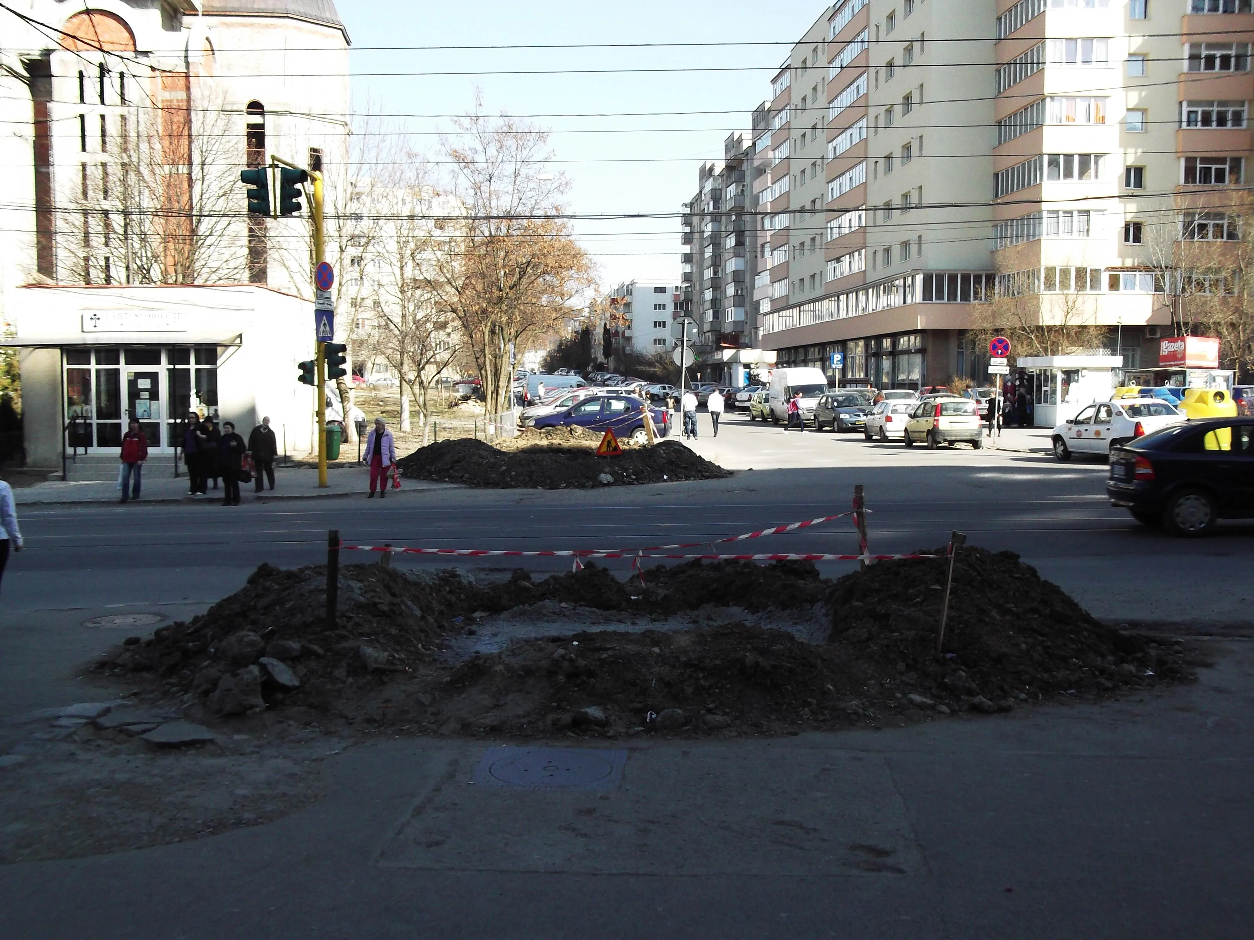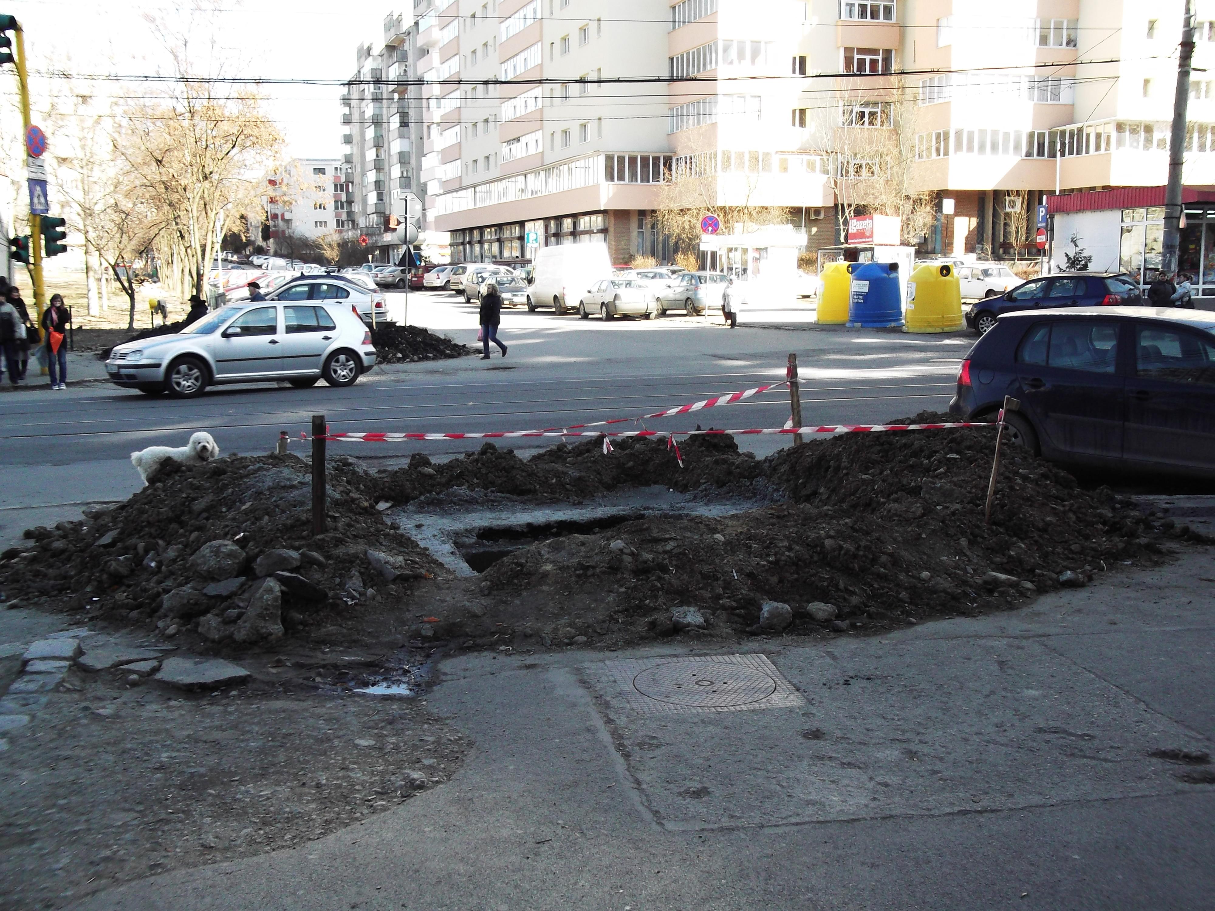E-ON Gaz a facut o dubla spartura pe strada Primaverii, langa linia de tramvai abia terminata FOTO