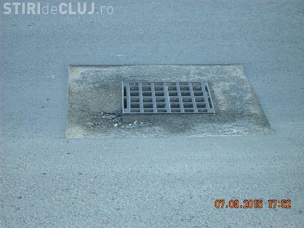 ”In 10.03.2015 scriati despre faptul ca pe strada Traian Vuia din Cluj-Napoca asfaltul turnat de cateva luni incepe sa se deterioreze in zona capacelor de canal. In 11.03.2015 o echipa de muncitori au sapat in jurul canalelor, le-au imprejmuit si imprejmuite au ramas pana azi si probabil la fel va fi inca mult timp”, ne-a sesizat un clujean care locuiește în zonă.