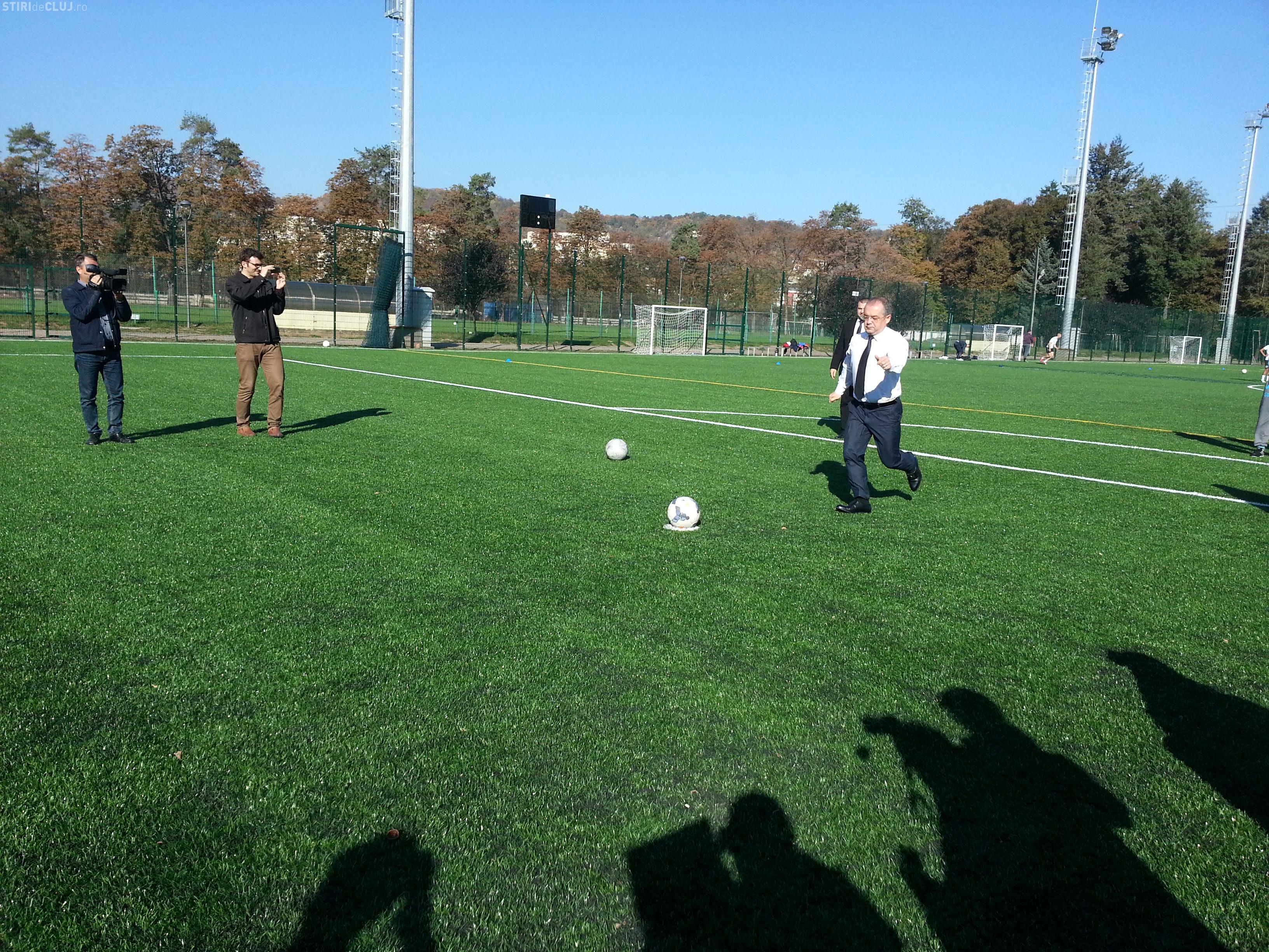 Emil Boc a jucat fotbal la inaugurarea Parcului Iuliu Hațieganu! Prefectul a ratat, iar primarul a înscris - FOTO