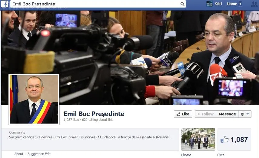 O nouă pagină de Facebook promovează candidatura lui Emil Boc la președinție. Pagina ”Emil Boc Președinte” a apărut în 25 aprilie și deja a adunat 1100 de like -uri.