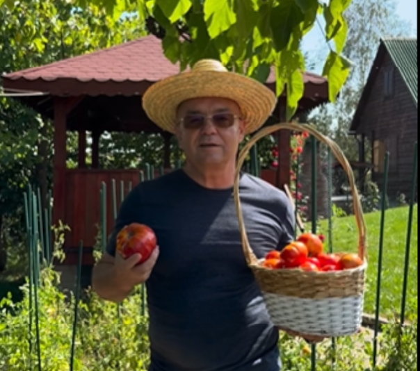 „Roșii bune și gustoase din producție proprie. No, bună treabă, Doamne ajută”, a transmis edilul, lăudându-și roșiile culese chiar de el.