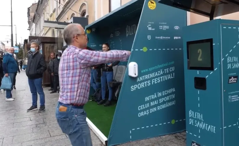 Biletul este valabil pentru cei care acceptă provocarea de a face 20 genuflexiuni. Ca răsplată pentru efort, aparatul emite 1 bilet de călătorie cu transportul în comun în municipiu.