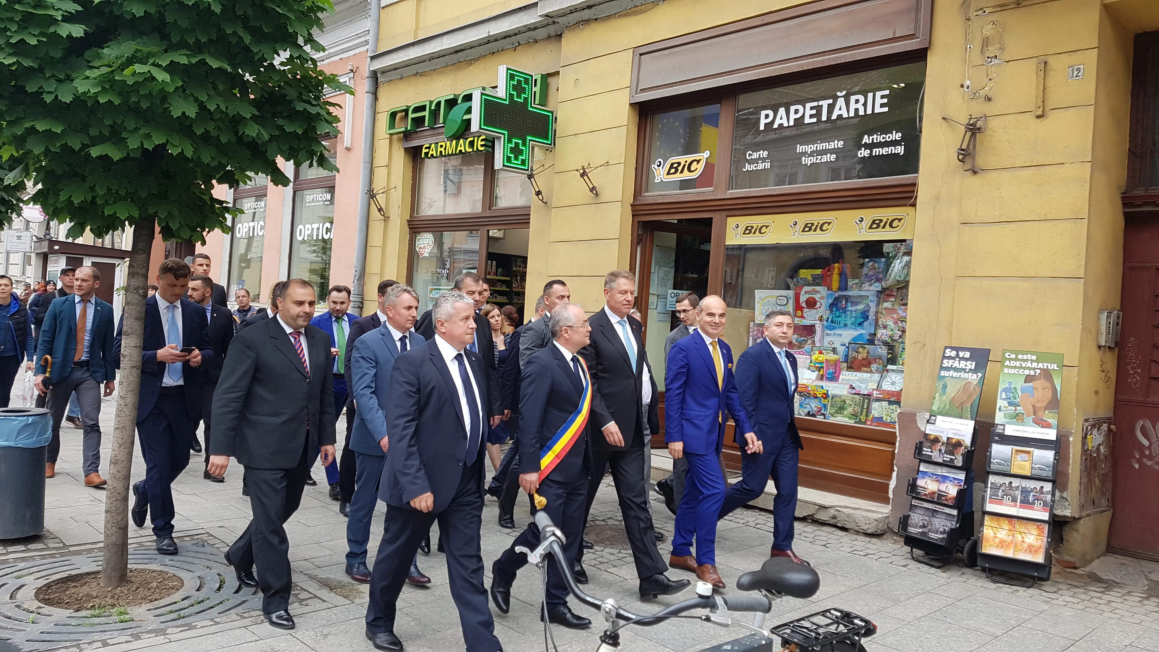 Șeful statului a pornit de la Primăria Cluj-Napoca, pe traseul Memorandumului - Piața Unirii - Kogălniceanu și Casa Universitarilor.