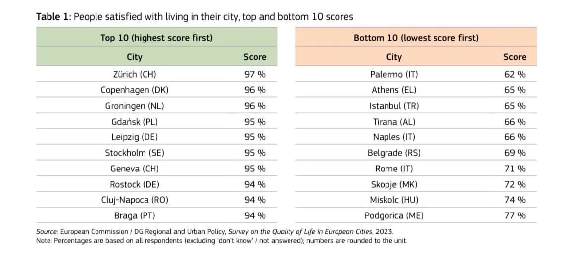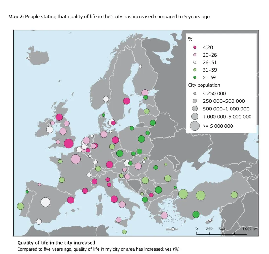 Studiul este realizat periodic de Comisia Europeană începând cu anul 2007 având la bază indicatori legați de percepția asupra satisfacției generale de locuire, siguranței, locurilor de muncă, dimensiunii verzi, serviciilor publice, transportului local, culturii ș.a.
