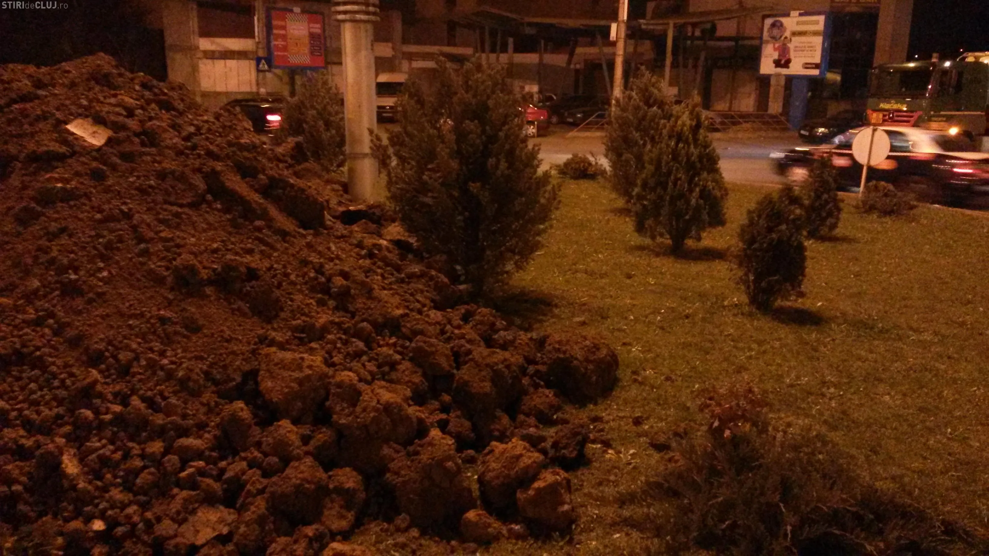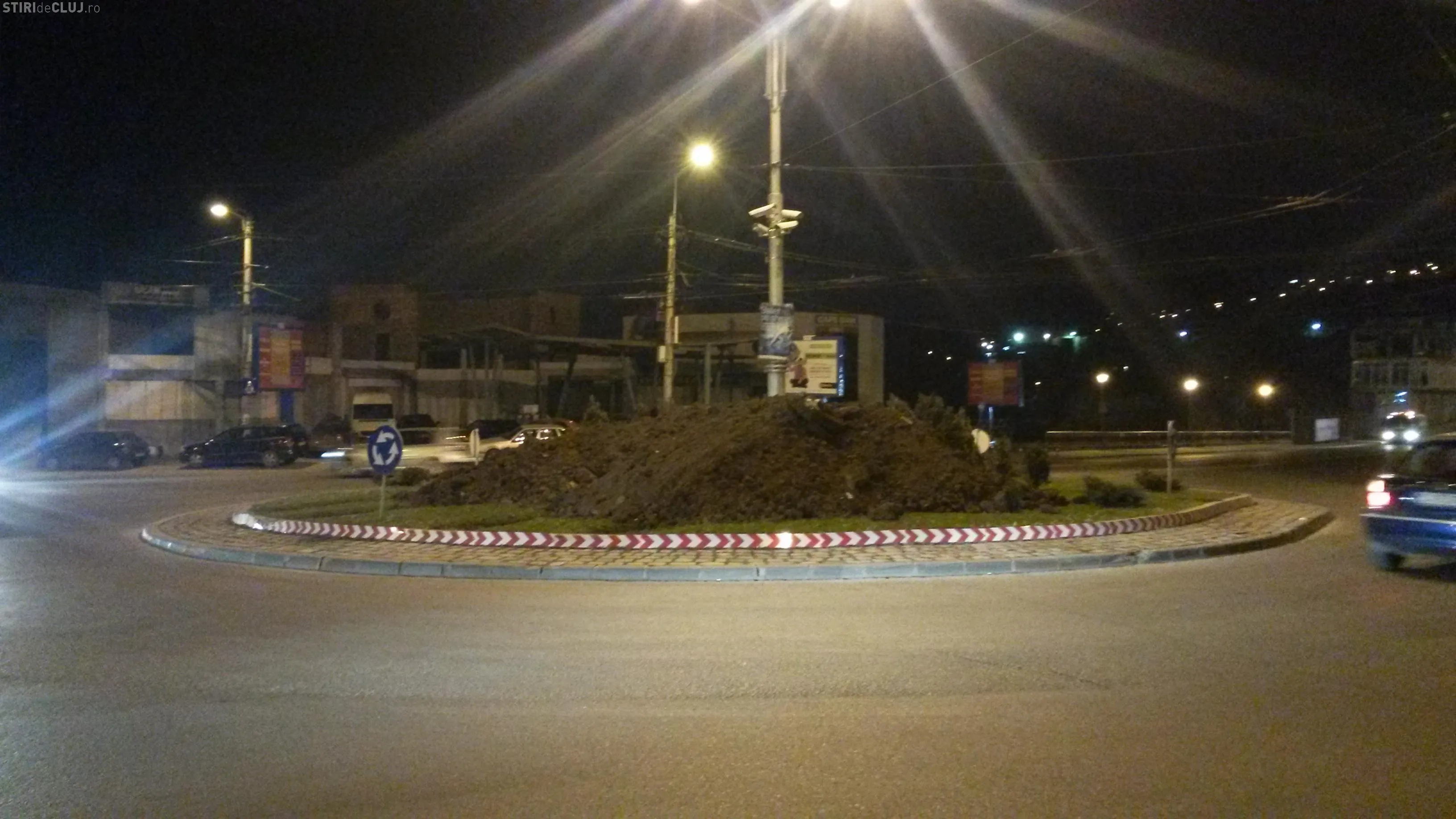 Cei de la Eco Garden au dus acolo un camion și au descărcat pământ peste sensul giratoriu, care fusese deja amenajat.