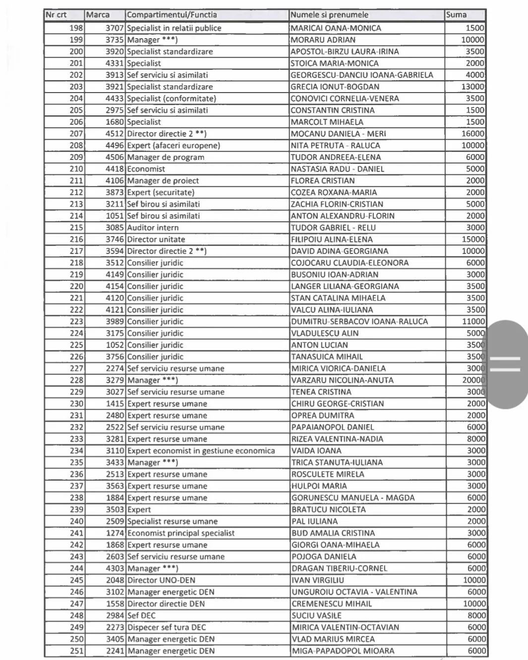 Nicolina Anuța Vărzaru, manager, director direcție, care a semnat alocarea acestor prime, a încasat 20.000 de lei, adică 4000 de euro. La fel a primit și fiul Steluței Cătăniciu, Tudor Rareș Cătăniciu, consilier de specialitate, prețuit pentru expertiza sa.