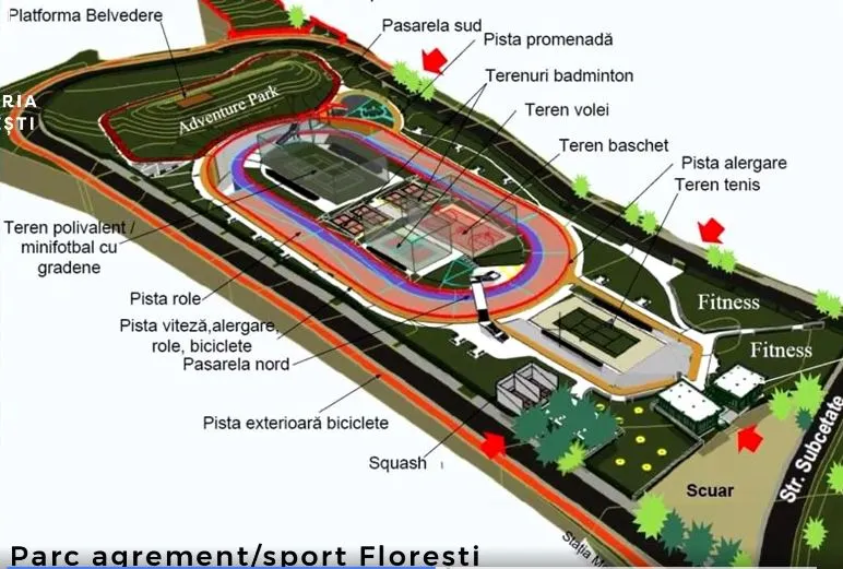”Am semnat contractul pentru proiectarea și execuția celui mai mare parc multifuncțional din Florești. Sportul este o componentă importantă pentru orice comunitate, cu atât mai mult pentru cea mai tânără localitate din țară. Parcul de pe strada Tăuțiului va fi edificat pe o suprafață de circa 4,2 hectare și va include un parc de aventură, o zonă de picnic, o pistă de role, o pistă de alergare, teren multifuncțional, zonă de fitness, teren de squash, terenuri de tenis, terenuri de badminton, terenuri de baschet și teren de volei. Toate aceste zone vor fi integrate într-o zonă verde și cu alei de promenadă.