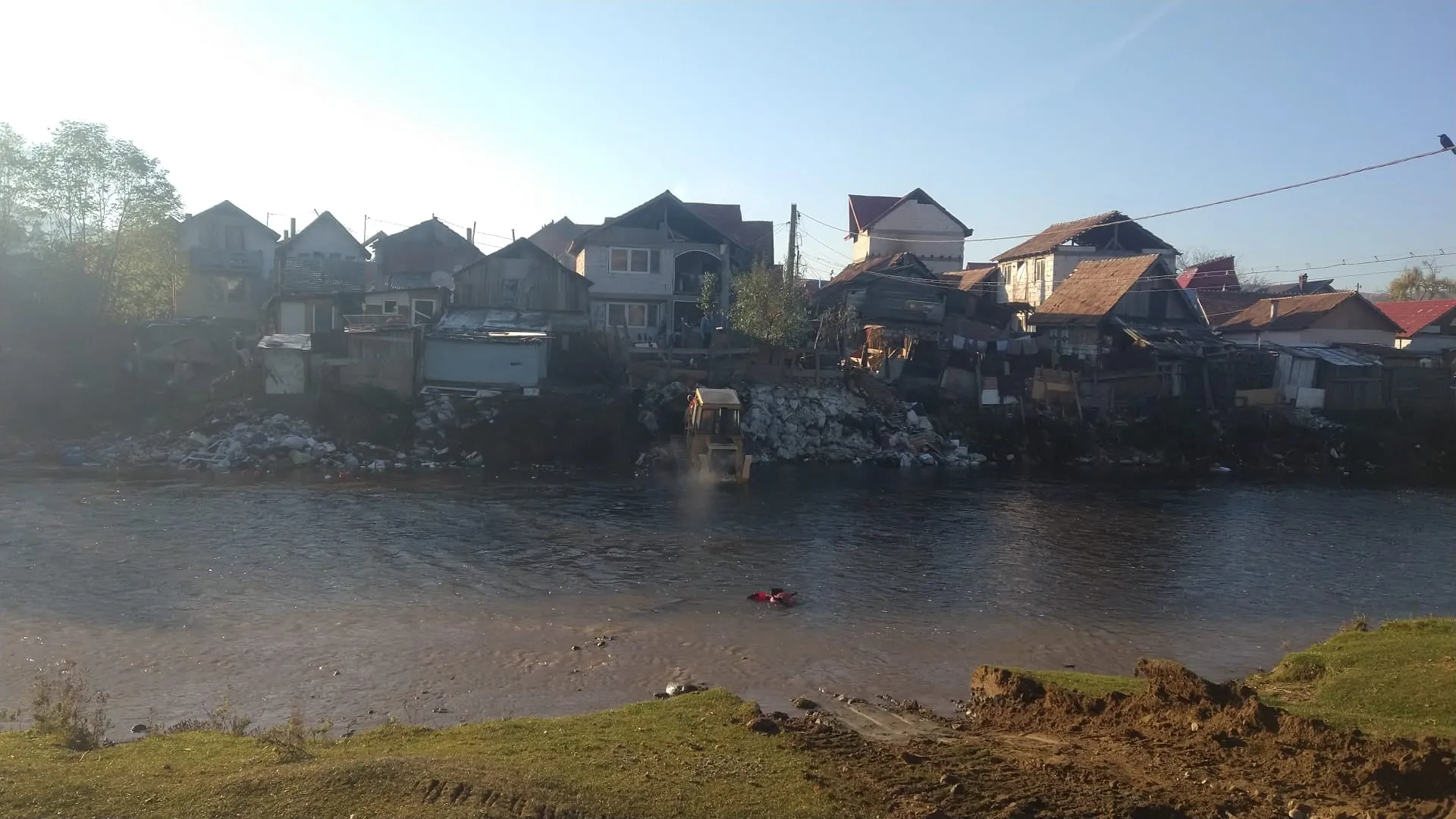 Am solicitat reducerea debitului de apă de la baraj, astfel încât să putem evacua prima parte din deșeurile din zonă. Am reușit să evacuăm, cu buldoexcavatorul, 114 tone de gunoi, de pe malul râului, dar și din apă, pe care le-am transportat cu 3 autobasculante.