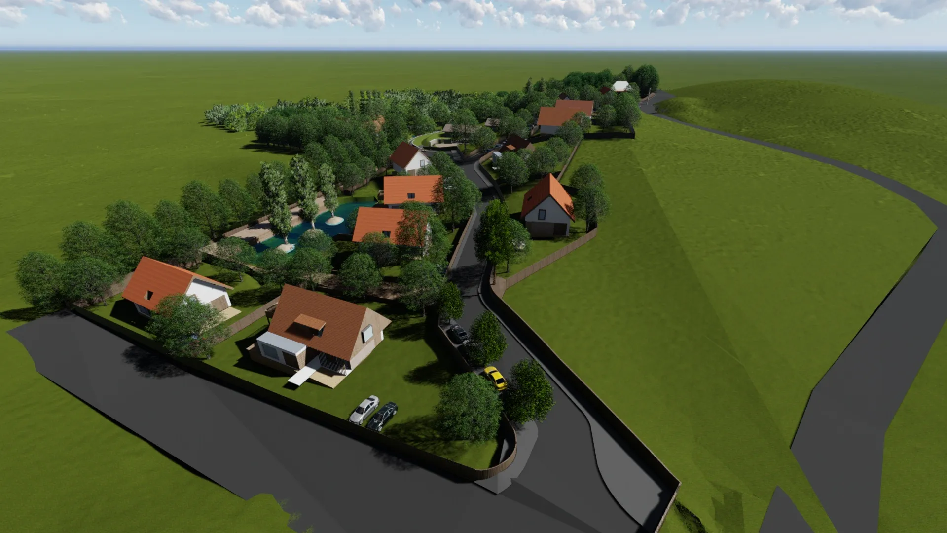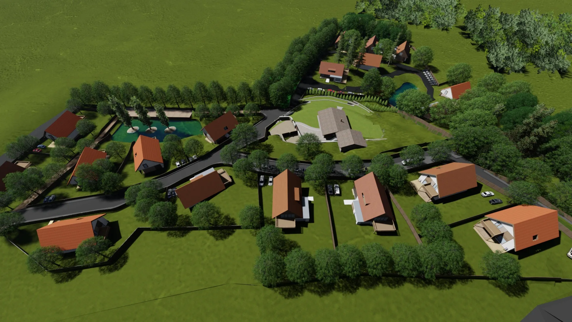 Functiunea de baza este cea de Locuire individuala de tip rural si se dezvolta de-a lungul drumurilor propuse, respectiv modernizate, cu parcele cu dimensiuni generice de 1000mp. Din circulatia principala propusa se desprinde un segment de drum care se va infunda ce duce la o parcela mai mare, amplasata in zona cea mai indepartata de drumul judetean, in partea de jos a terenului, organizata in jurul celui de al 2-lea lac,cu un caracter mai intim, cu o suprafata de 11.900 mp pe care se prevede o dezvoltare cu case individuale, dispuse pavilionar in jurul unui drum de incinta.