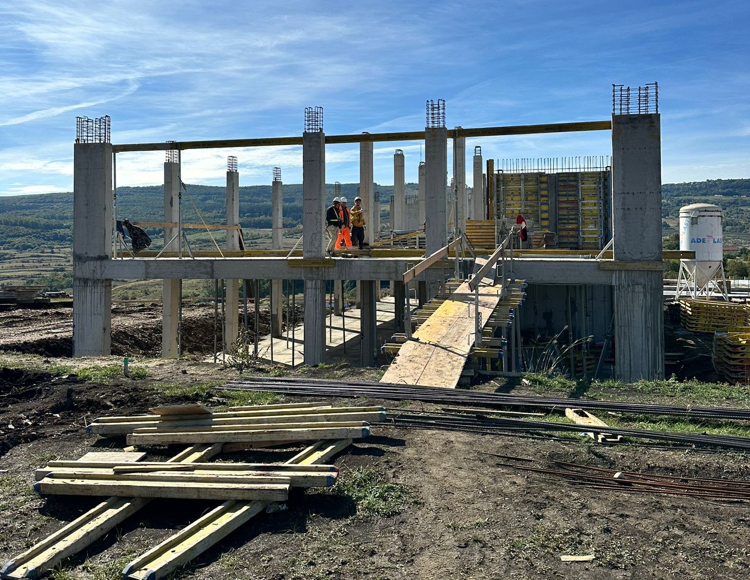 Școala: Plăcile pentru demisol și parter la corpul C sunt finalizate, iar diafragmele zidurilor la sala de sport sunt în lucru.