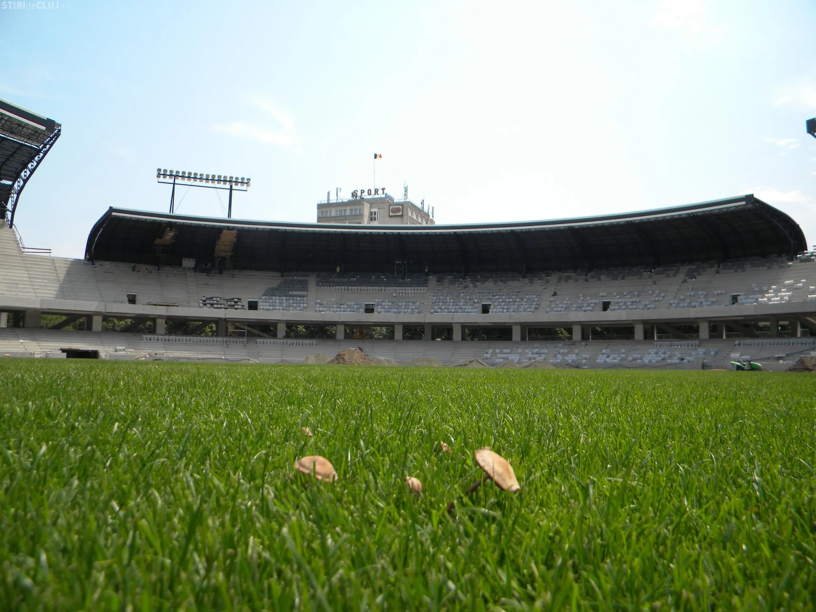 Ciupercile care au aparut in numar mare au "ignorat" faptul ca "sub gazonul propriu-zis este o adevarata 'uzina', care va face ca terenul sa fie optim pentru joc in orice anotimp. Are 8.150 de metri liniari de santuri, 900 de metri liniari de tubulatura pentru sistemul de drenaj, 260 metri liniari de tubulatura canalizare apa meteorica, 24 de aspersoare pentru irigatii, 49 de km de cablu de incalzire si de alimentare", precizeaza oficialii CJ Cluj.