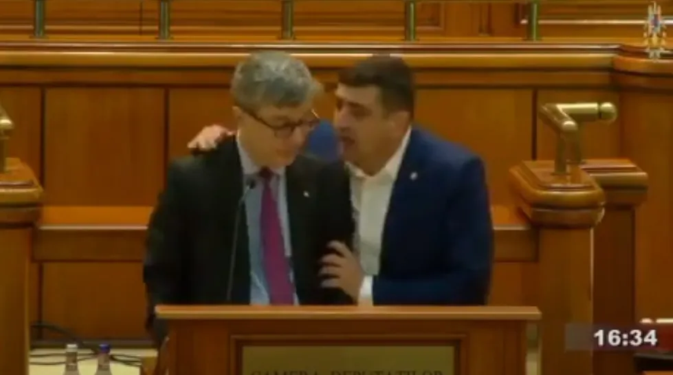 În timp ce vorbea, George Simion a strigat din rândurile parlamentarilor: ”Ești un hoț!”.