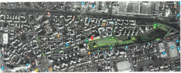 ”Primăria municipiului Cluj-Napoca urmărește revitalizarea zonei cunoscute drept ExpoTransilvania din cartierul Mărăști, pe o suprafață de 17 hectare, prin regenerarea și extinderea Parcului Aurel Vlaicu, amenajarea străzilor și spaţiilor publice adiacente și dotarea acestora cu echipamente cu tehnologie de tip Smart City, realizarea unui parking și reglementarea viziunii urbanistice pentru viitor.