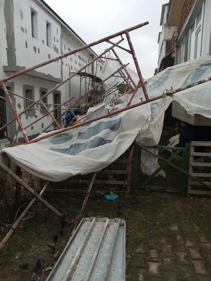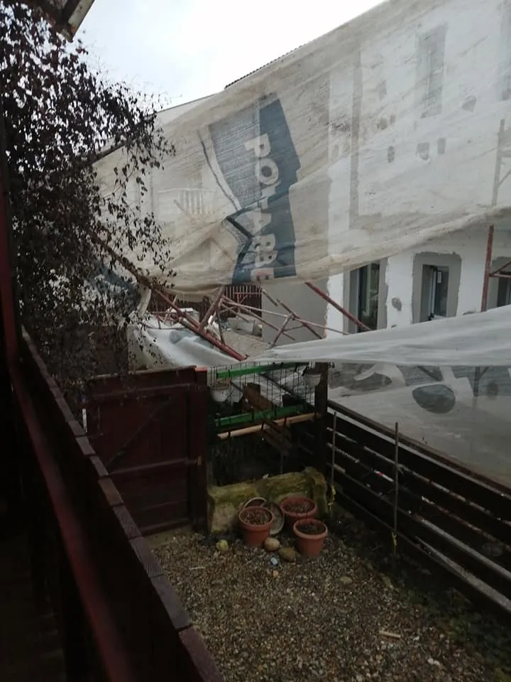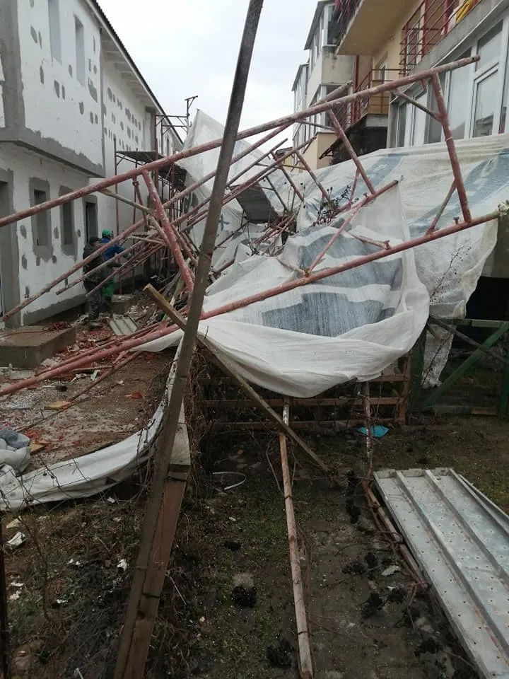 Haos pe un șantier din Florești, pe strada Sub Cetate. Schelele au căzut peste blocul vecin - FOTO