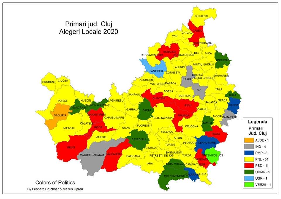 Harta politică a Clujului este galbenă. USR și Verzi au câștigat câte o primărie - FOTO