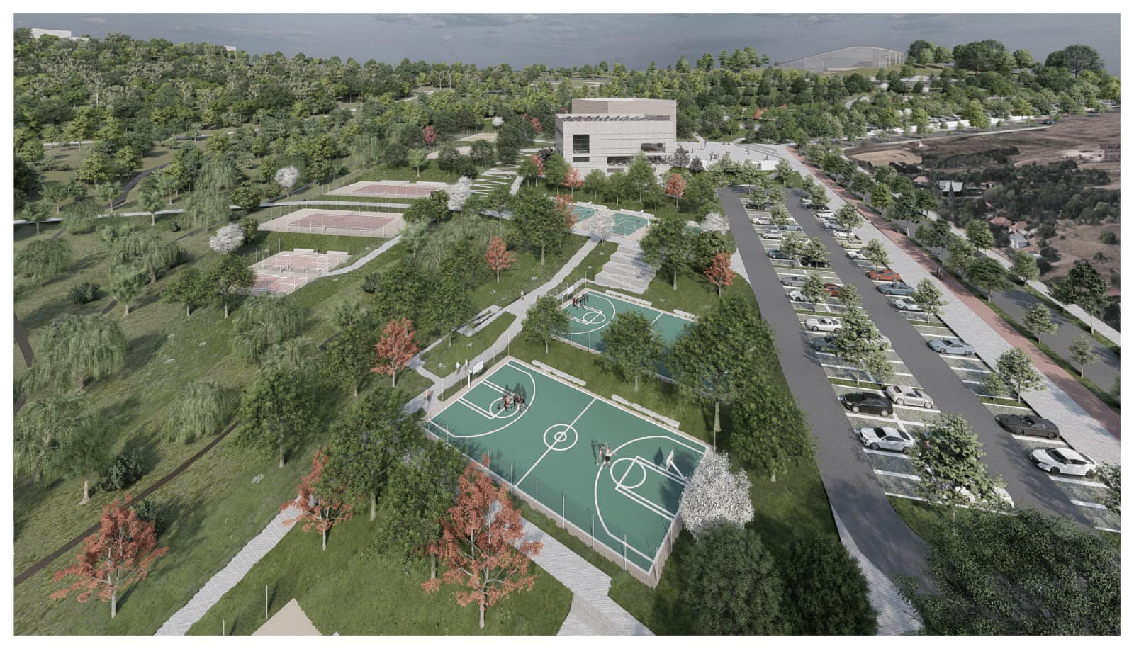 - Bază sportivă: agrement și terenuri sportive, activități recreative cu acces nelimitat: locuri de joacă pentru copii, zonă șah, zonă ping-pong, zona aparatelor fitness, zonă skate și zonă parkour, amfiteatru deschis cu gradene și un grup sanitar public