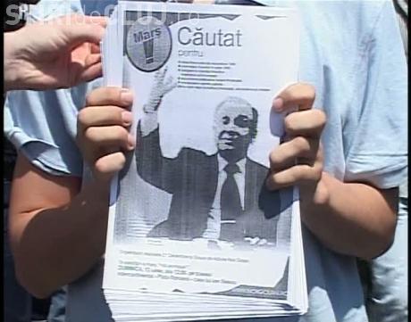 Fostul presedinte al Romaniei, Ion Iliescu, a fost intampinat la lansarea propriei carti cu afise pe care scria ca este cautat pentru furtul Revolutiei.