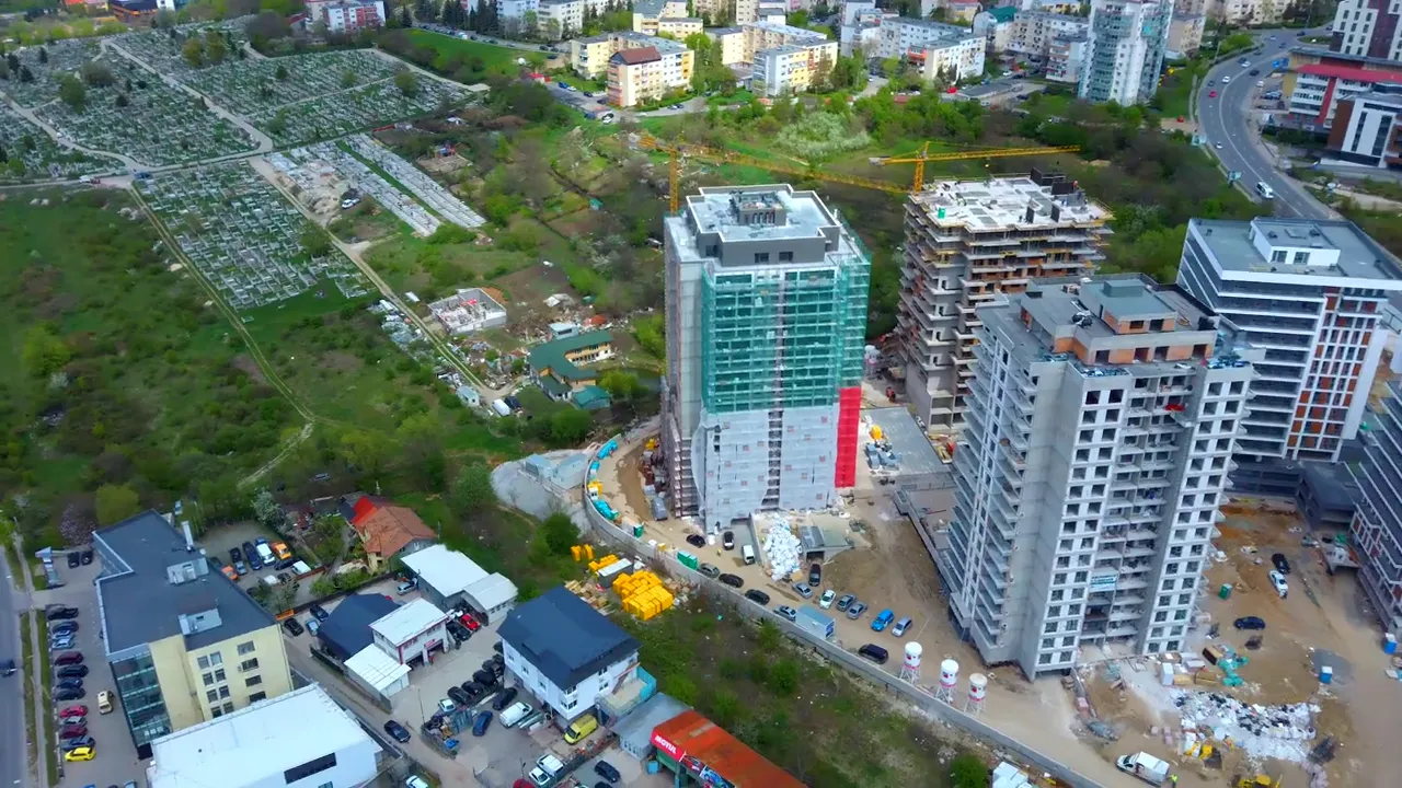O filmare aeriană prezintă zona Frunzișului, unde acum se ridică o serie de blocuri de zece etaje. Din imagini se vede că zona dispune de teren suficient și, cu siguranță, vor apărea alte blocuri, de o parte și de alta a drumului.