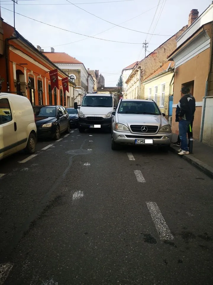 Parcările au fost trasate pentru pigmei, cred clujenii. Rezultatul acestui mod de trasa parcări este că se produc blocaje.