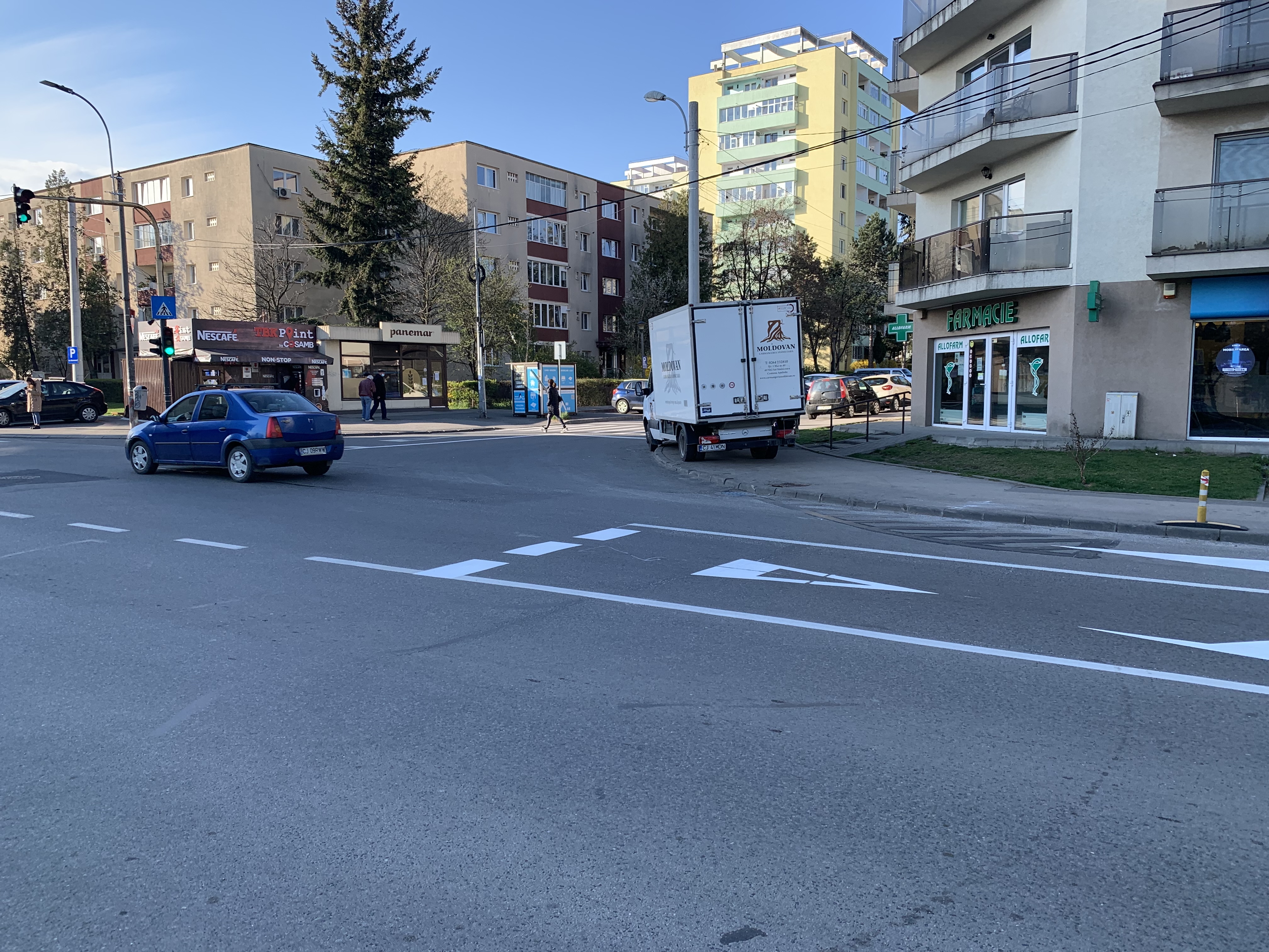 Acum banda de la bordura este pentru mers înainte si la dreapta, iar banda a doua este pentru viraj la stânga. Va fi folosită in principal de taximetriștii, care întorceau pana acum direct in intersecție.
