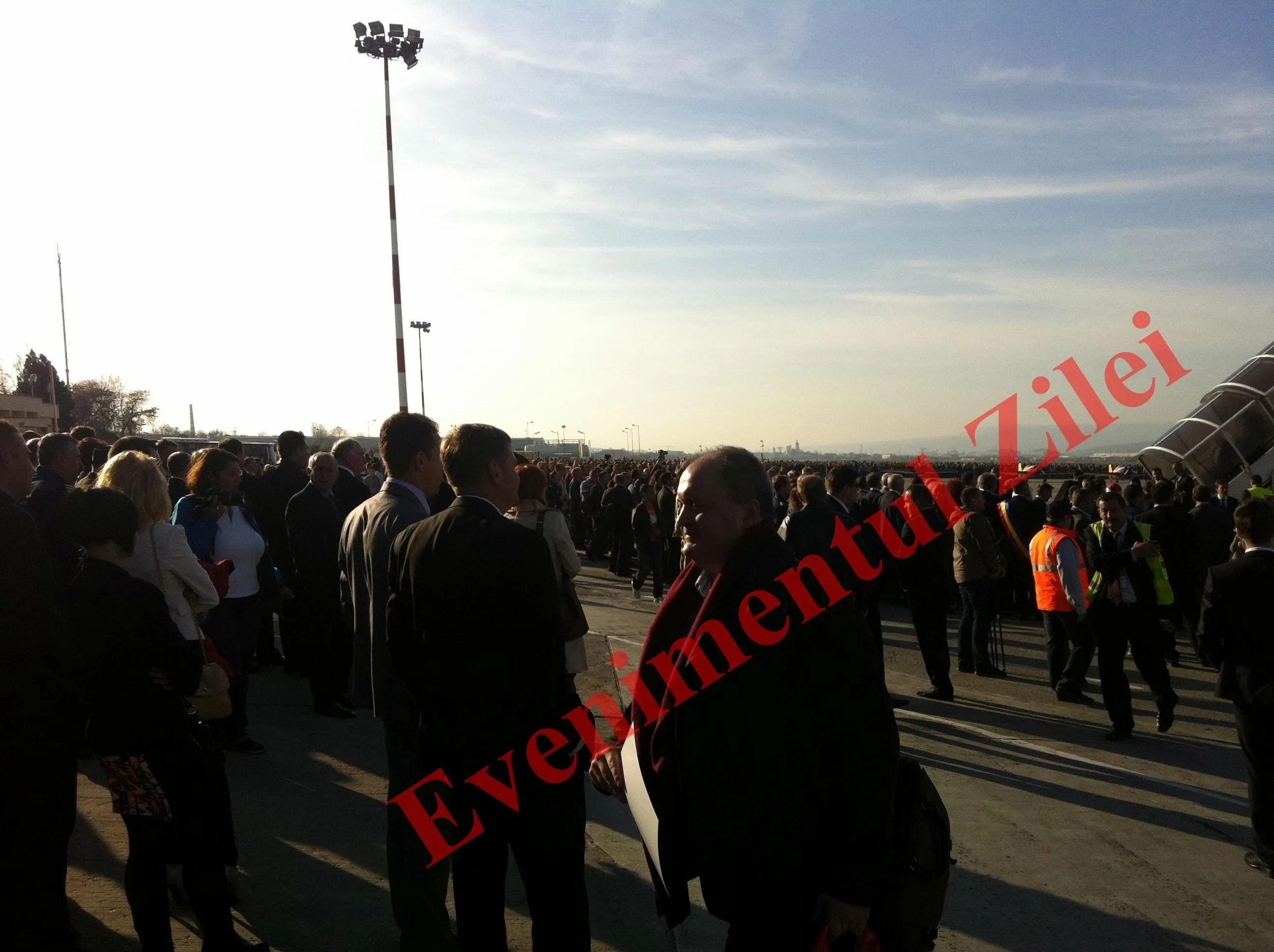 În timp ce toată lumea era atentă la scena inaugurării noii piste de aterizare - decolare a Aeroportului clujean şi la aterizarea primului avoion, într-un colţ, pierdut printre oficialităţi, se aflau doi ofiţeri de la ”Doi şi un sfert”. Unul dintre ei era chiar şeful acestui Serviciu, secretarul de stat Gelu Oltean, subordonat direct primului ministru Victor Ponta. După ce avionul TAROM a aterizat în siguranţă, pasagerii au coborât rând pe rând fiind premiaţi cu o diplomă de onoare, scrie EvZ.