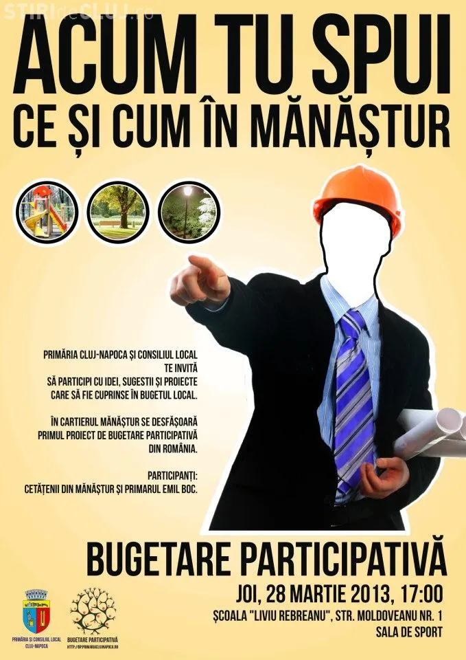 Primăria Cluj-Napoca îi invită pe mănăștureni și pe toți cei interesați de procesul de bugetare participativă, la prima întâlnire de cartier din cadrul proiectului pilot demarat la începutul acestui an la Cluj-Napoca.