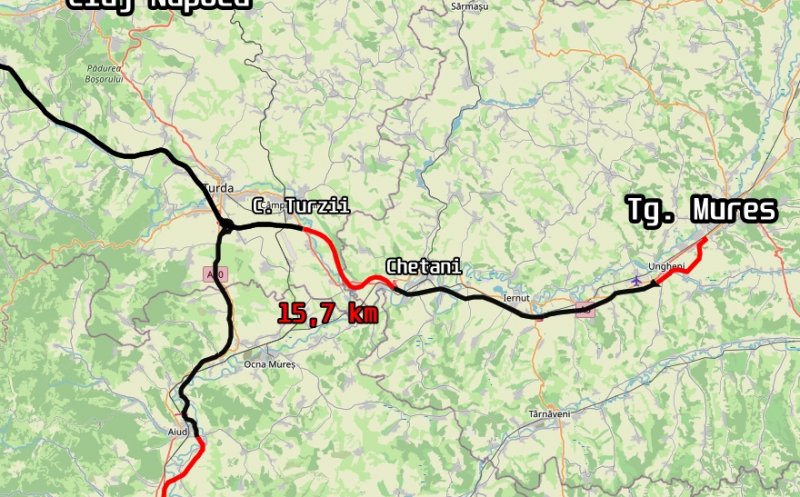 Între Cluj-Napoca și Târgu Mureș mai lipsește doar o porțiune de aproximativ 16 kilometri de autostradă. Lotul, aflat între Câmpia Turzii și Chețani, ar urma să fie finalizat până la finele lui 2023.