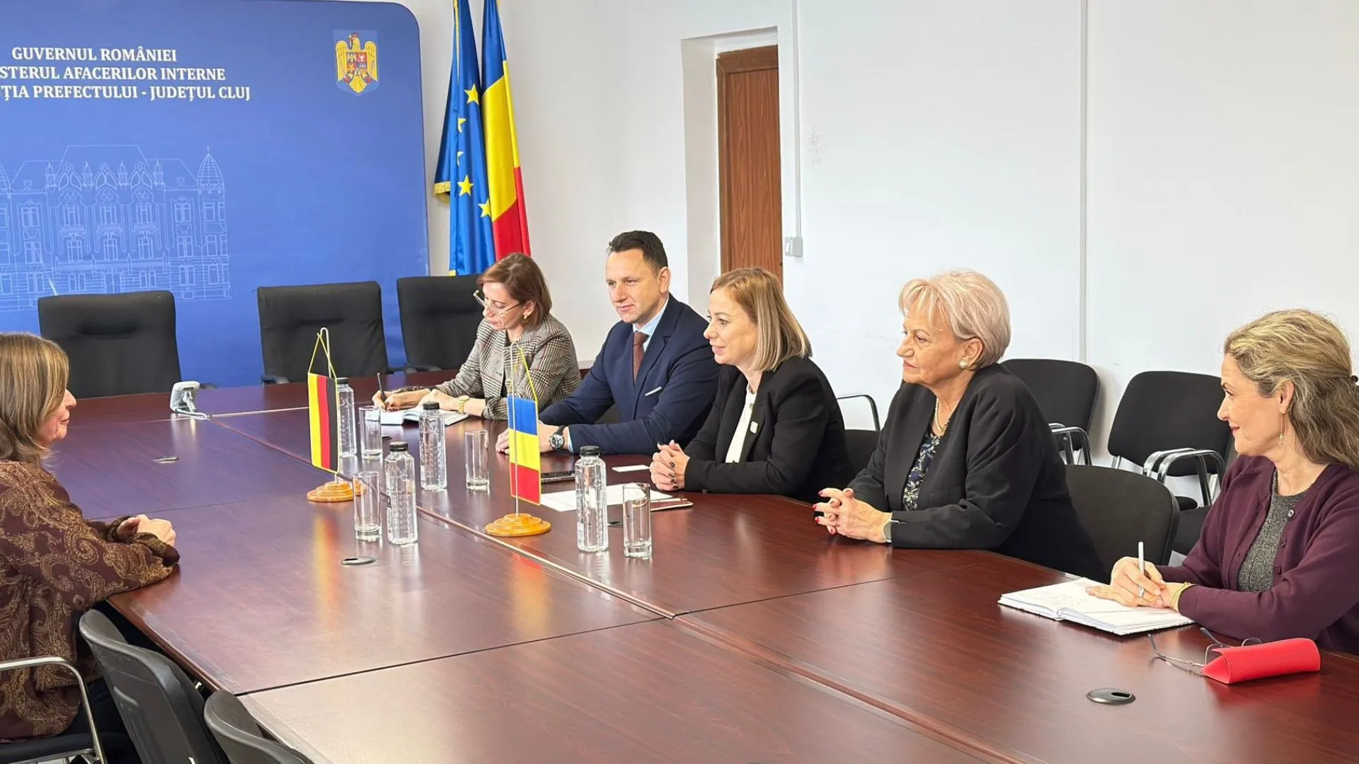 Prefectul județului Cluj, doamna Maria Forna, a avut astăzi o întâlnire oficială cu șeful misiunii diplomatice a Consulatului Republicii Federale Germania la Sibiu, doamna Wiebke Oeser, pentru a consolida relațiile bilaterale și identificării de noi direcții de cooperare între mediul local și partenerii germani. La eveniment au fost prezenți și subprefecții județului, doamna Maria Buzaș Fekete și domnul Florentin Burz, care au contribuit la discuțiile privind dezvoltarea economică, educațională și culturală în județ.
