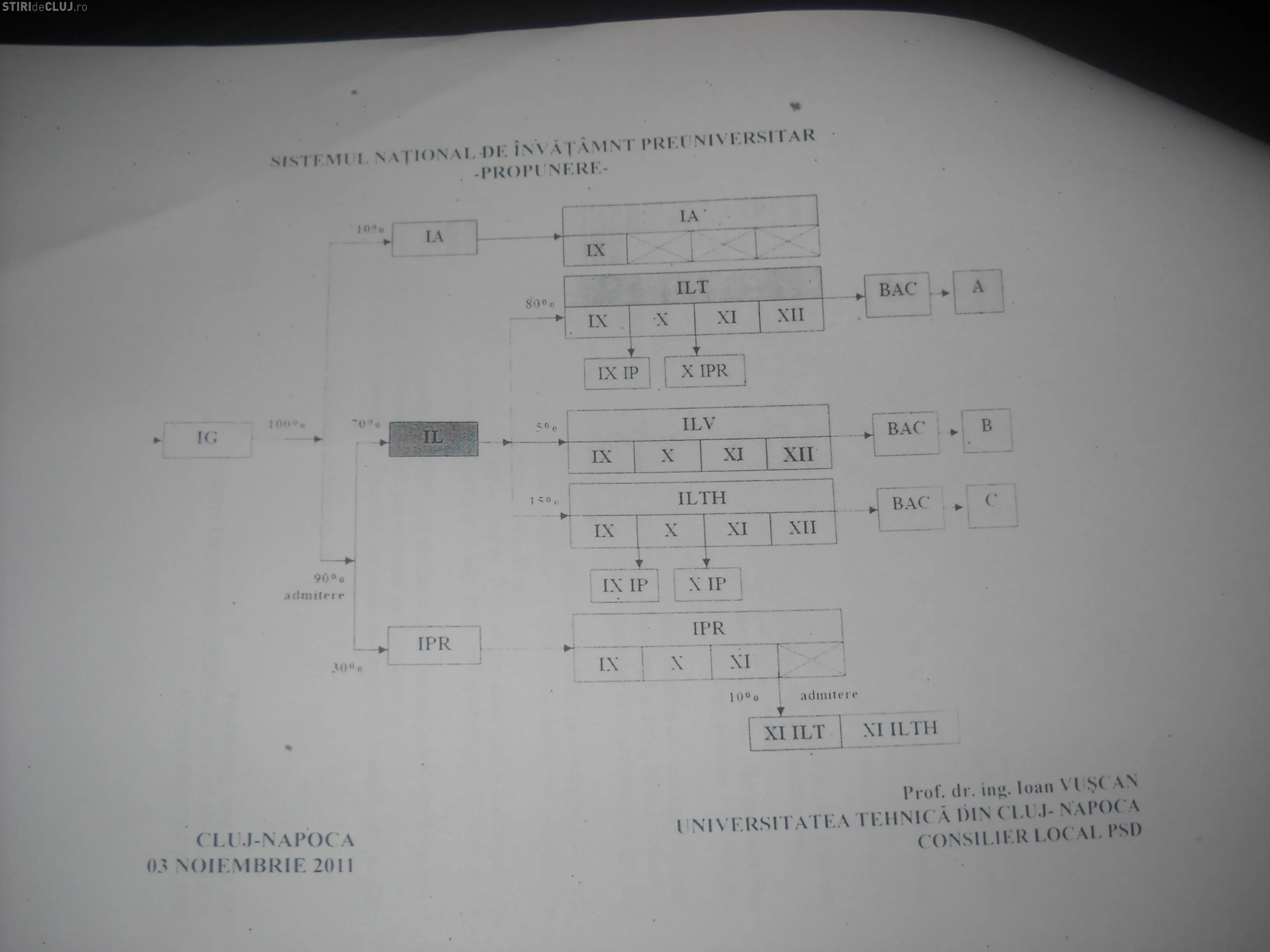 Proiectul realizat de Ion Vuscan presupune un invatamant gimnazial (IG) de 8 clase, dupa care elevii sa opteze pentru o forma de invatamant aplicat (IA) prin concurs de admitere in invatamantul liceal, teoretic (ILT), vocational (ILV) sau tehnologic (ILTH), ori scoala profesionala (IPR).