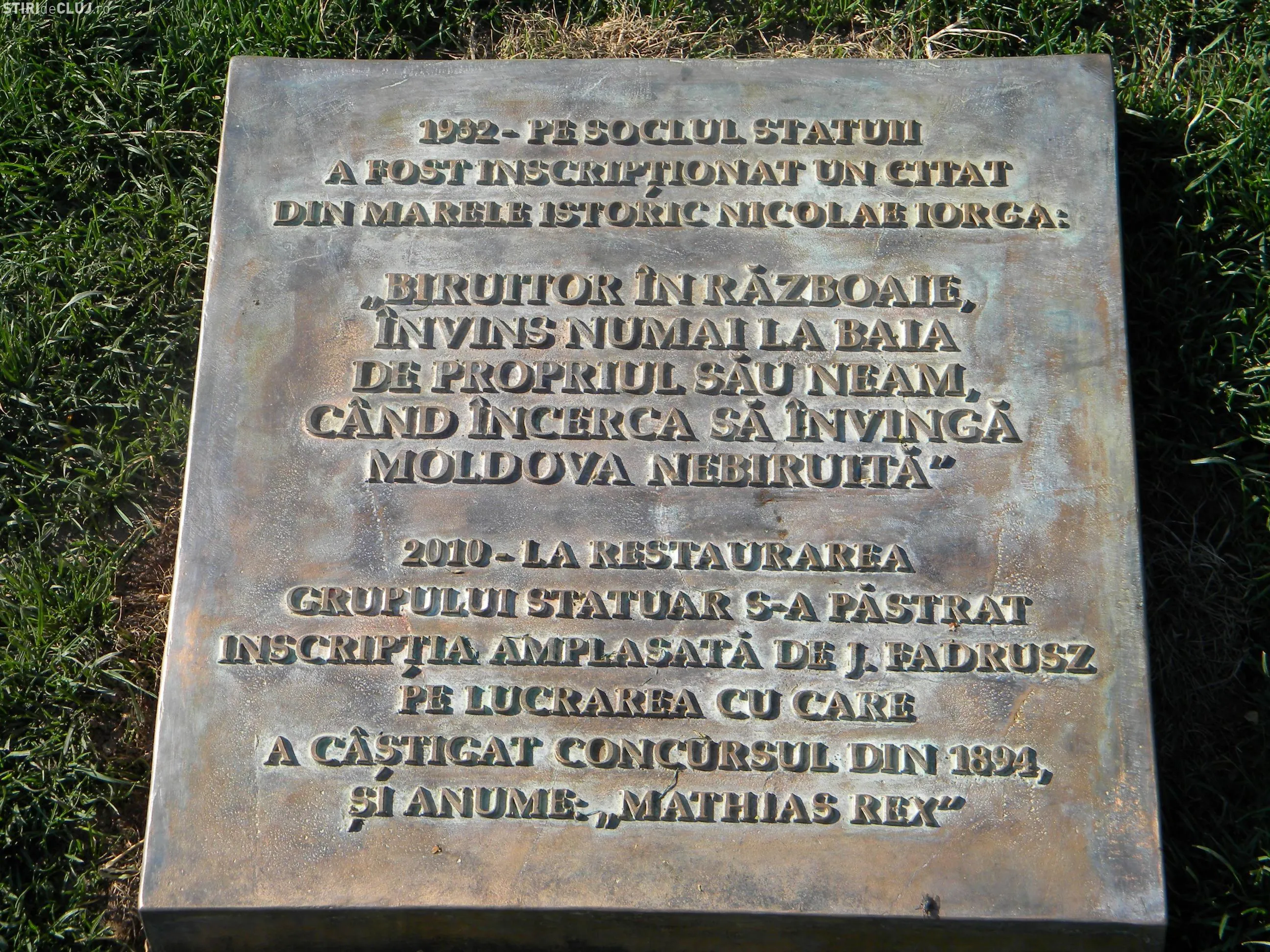 Placuta lui Nicolae Iorga, reamplasata pe statuia lui Matei Corvin pe ascuns