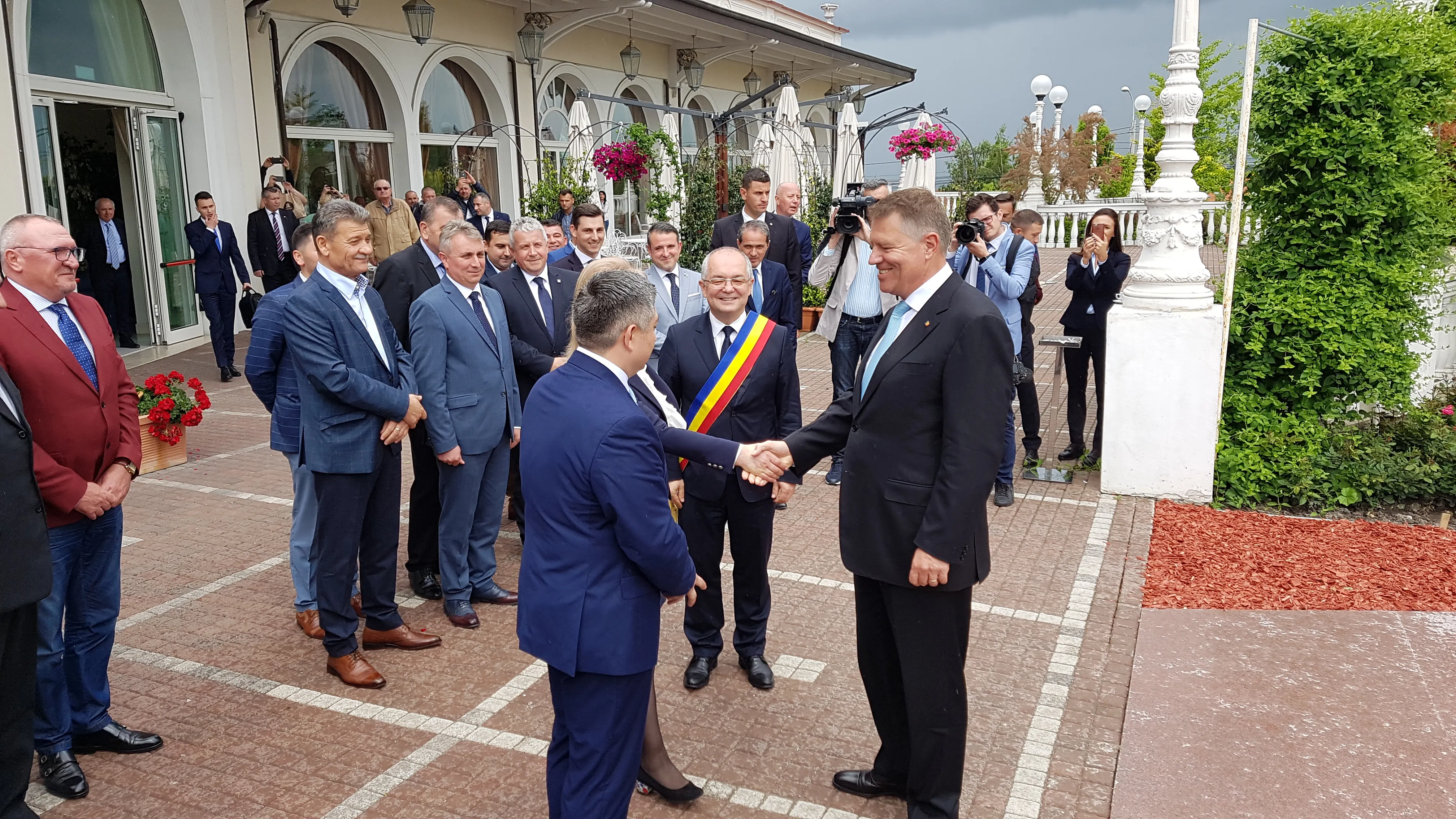 Cand a fost primit de delegatia de primari din Cluj-Napoca, Arad, Alba Iulia si oficiali din Zalau, presedintele i-a spus lui Emil Boc "primarul general" al regiunii. Boc a zambit si a respins titlul.