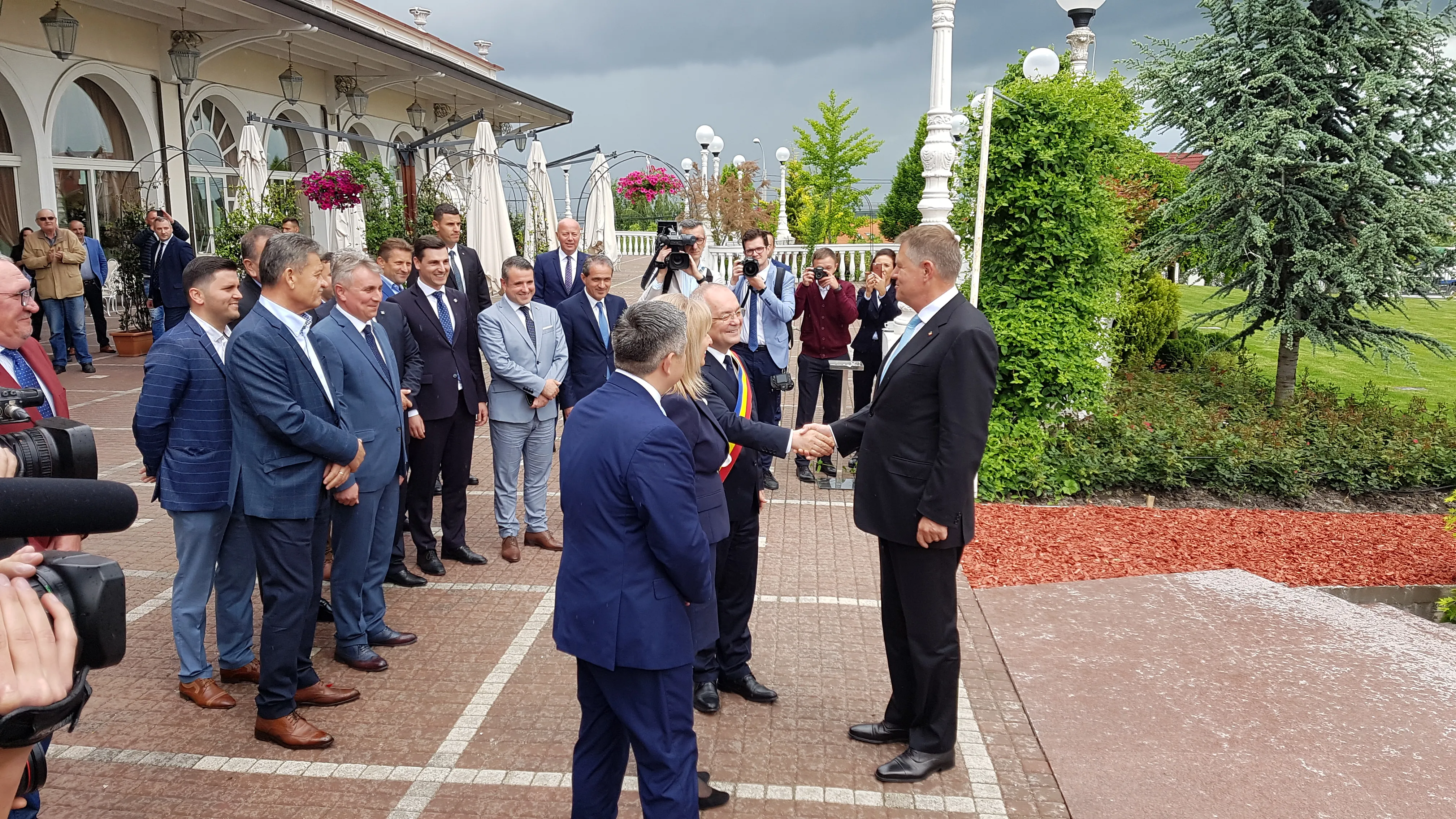Emil Boc statea de vorba cu Mircea Hava, primarul din Alba Iulia, cand a ajuns presedintele la ei. Klaus Iohannis l-a intrebat pe Hava daca sta de vorba cu primarul general, referindu-se la primarul Clujului, iar Boc a spus ca ia lectii de la Hava, care va pleca europarlamentar si va lasa scaunul de primar liber. Mircea Hava este decanul de varsta al primarilor PNL din Transilvania, iar presedintele l-ar vrea pe Boc in continuare la Primaria Cluj-Napoca.