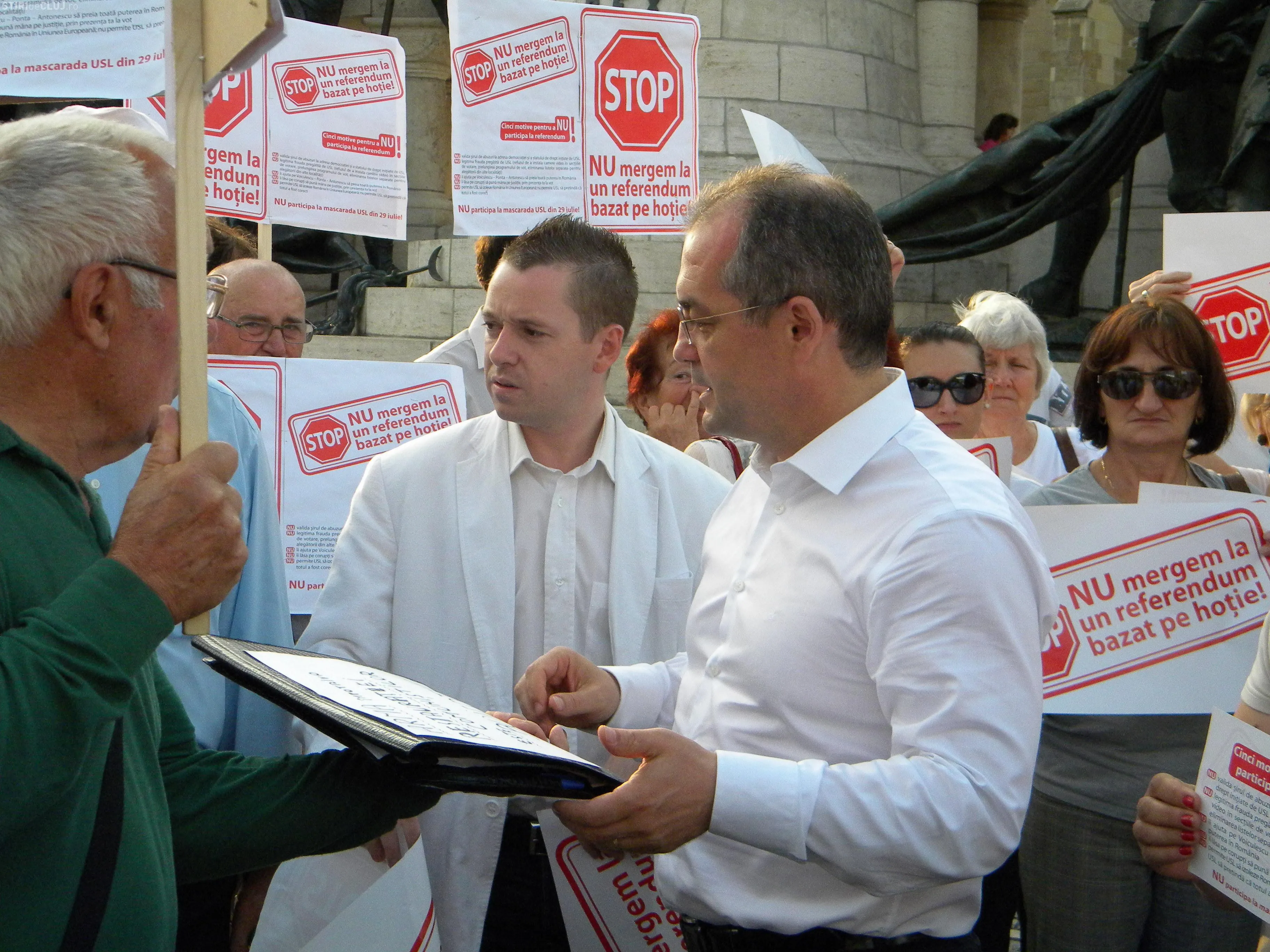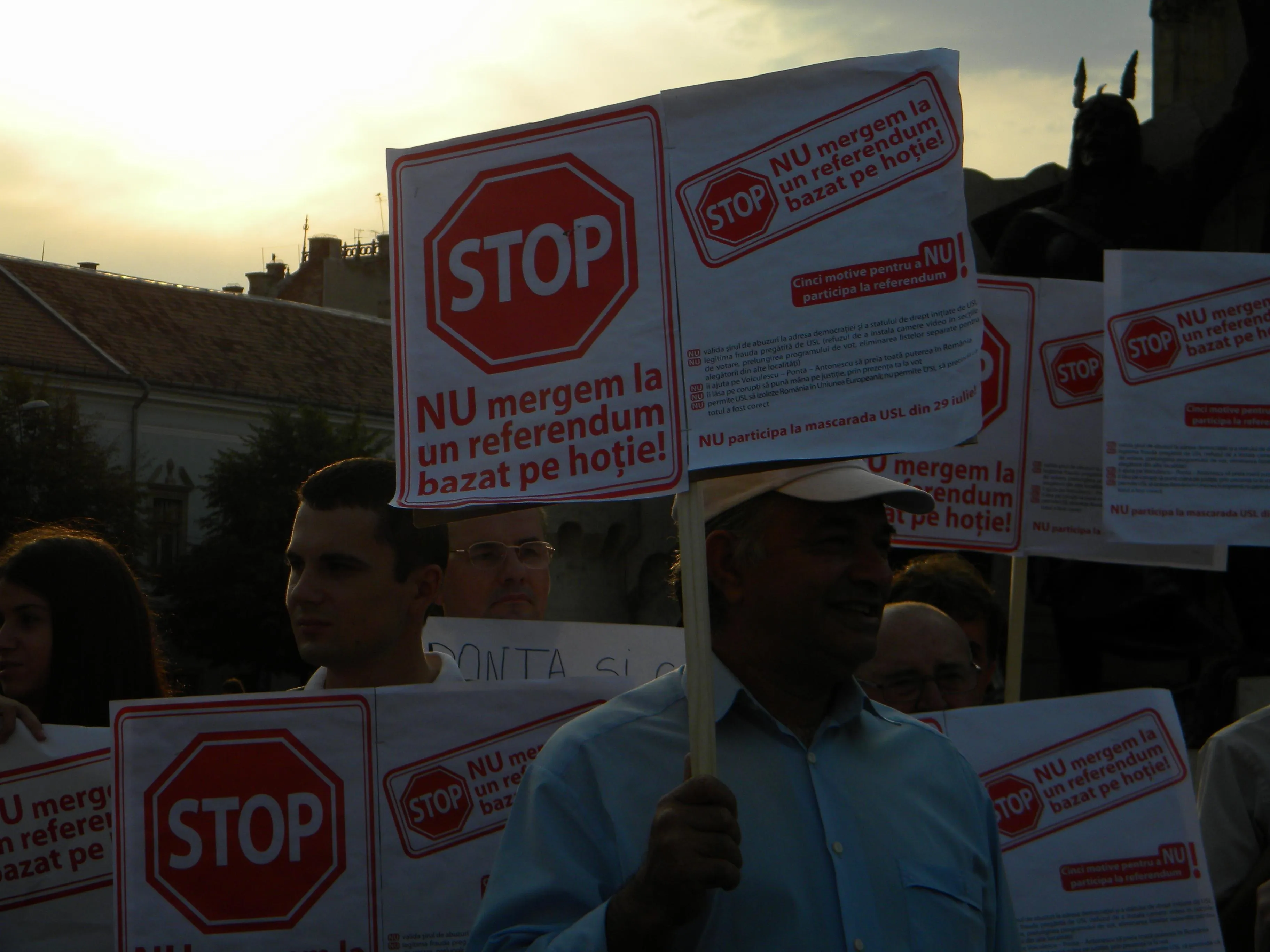 Prin prezenţa lor în Piaţă, protestatarii au dorit să transmită mesajul lor de neparticipare la referedumul ce va avea loc duminică, 29 iulie.